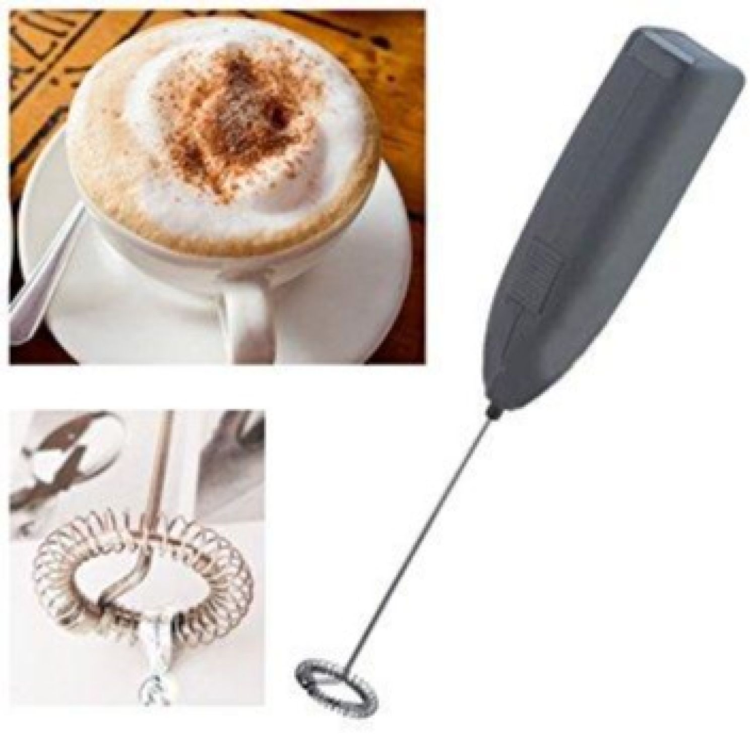 Milk Frother Coffee Whisk Handheld Battery Operated Foam Maker For Cappuccino Latte Coffee Drink Mixer Red. Create the exact foam you desire. Be your own barista! Durable and easy to use. Handheld milk frother for making the perfect coffee drink or milkshake. Requires two AA batteries. The Modern Wave milk frother makes the perfect coffee drink. Wipe clean with a damp cloth after use. The handheld battery operated device creates foam by spinning a whisk at high speeds below the surface of milk. Coffee foam maker for cappuccino, latte, coffee, hot chocolate, drink mixer