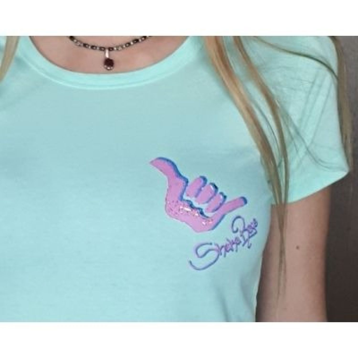 Cool Mint Art Deco Dudettes T-shirts with Pink Logo Available in S, M, L and XL