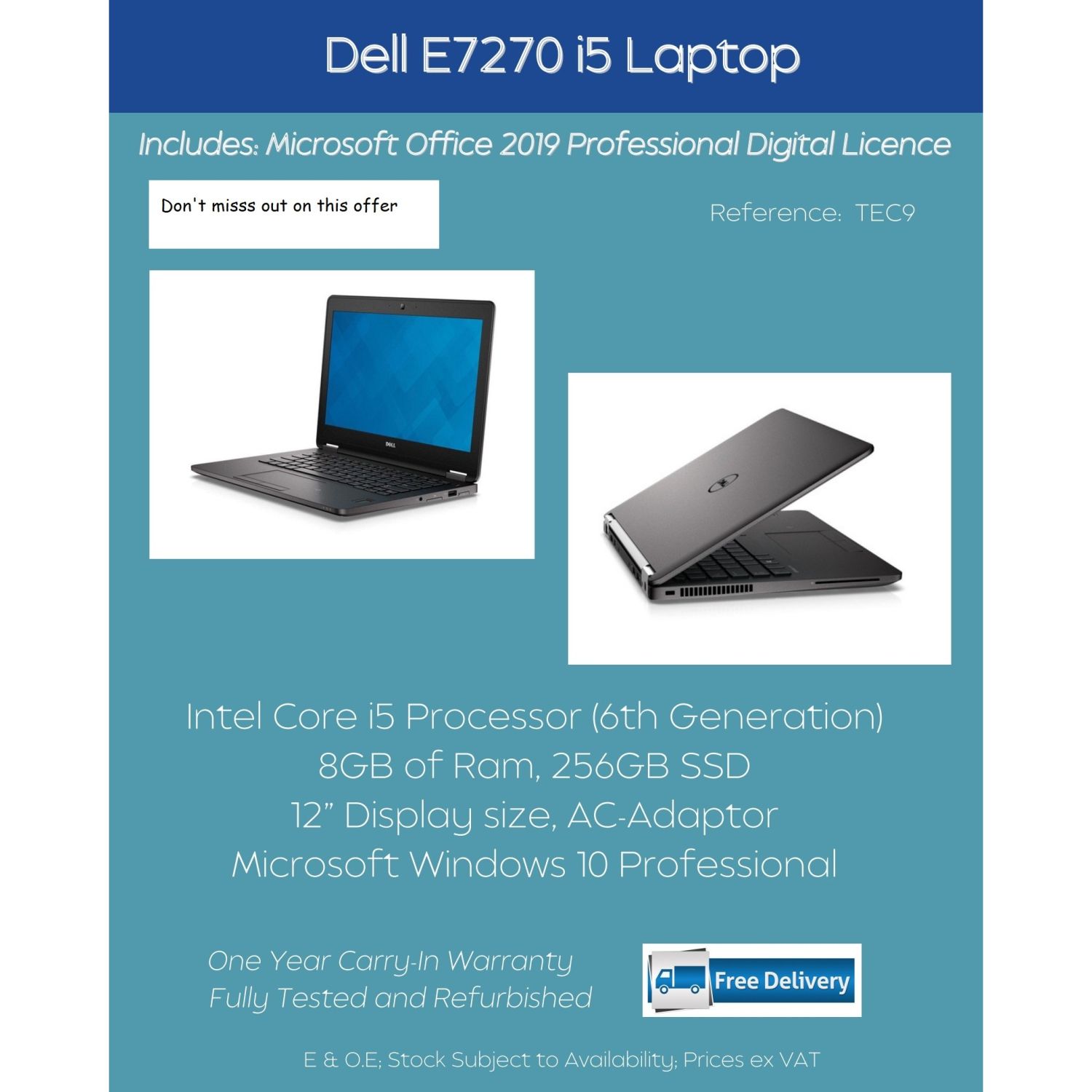 EFT Payments only Free delivery on laptops Nationally 3 * 4 Days lead time for delivery