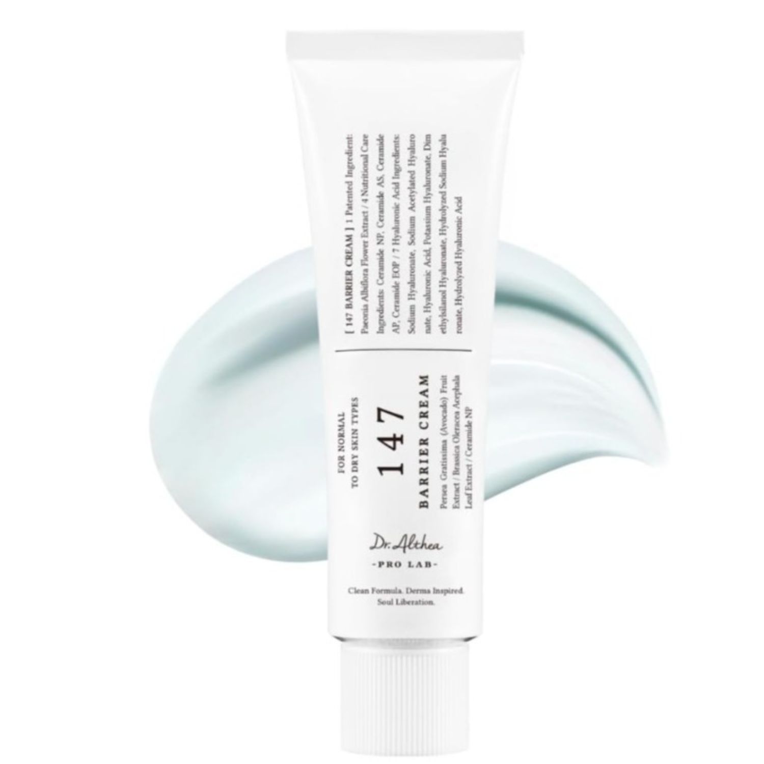 147 Barrier Cream enhances the skin barrier, nourishing the skin, and providing deep hydration. The cream achieves this through its patented ingredient, Paeonia Albiflora Flower Extract, which enhances the skin barrier. Additionally, it contains nourishing elements such as avocado fruit extract. The cream also includes significant concentrations (10,000ppm each) of Artemisia Princeps Leaf Extract, Persea Gratissima (Avocado) Fruit Extract, and Brassica Oleracea Acephala Leaf Extract, offering a comprehensive approach to skincare needs.