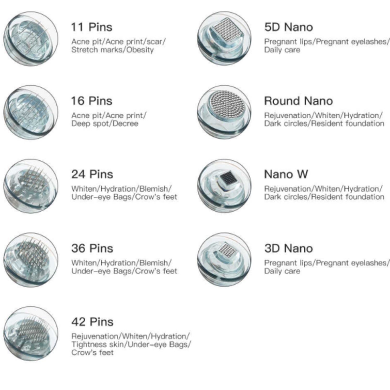 Each cartridge consists of different needle pins/heads (Depending which is style is selected).