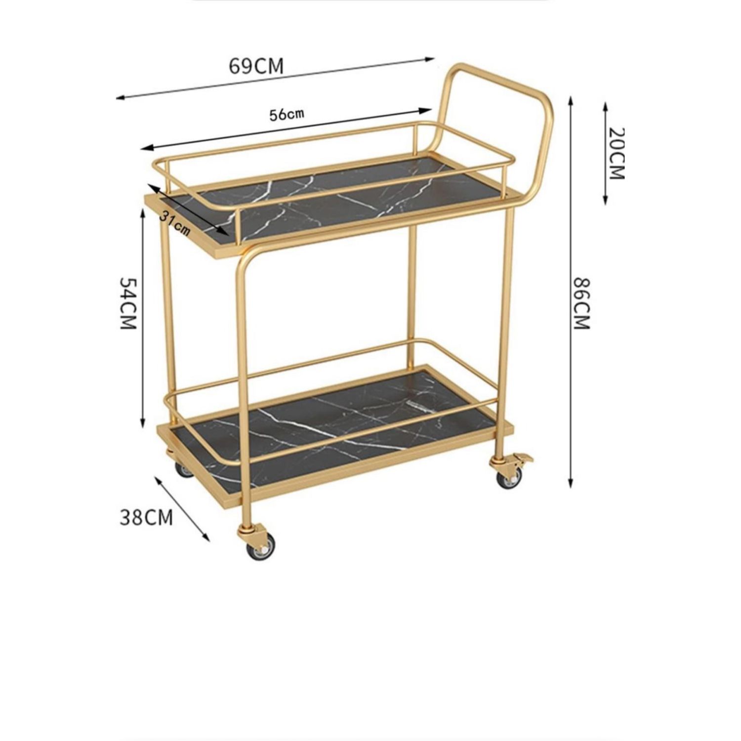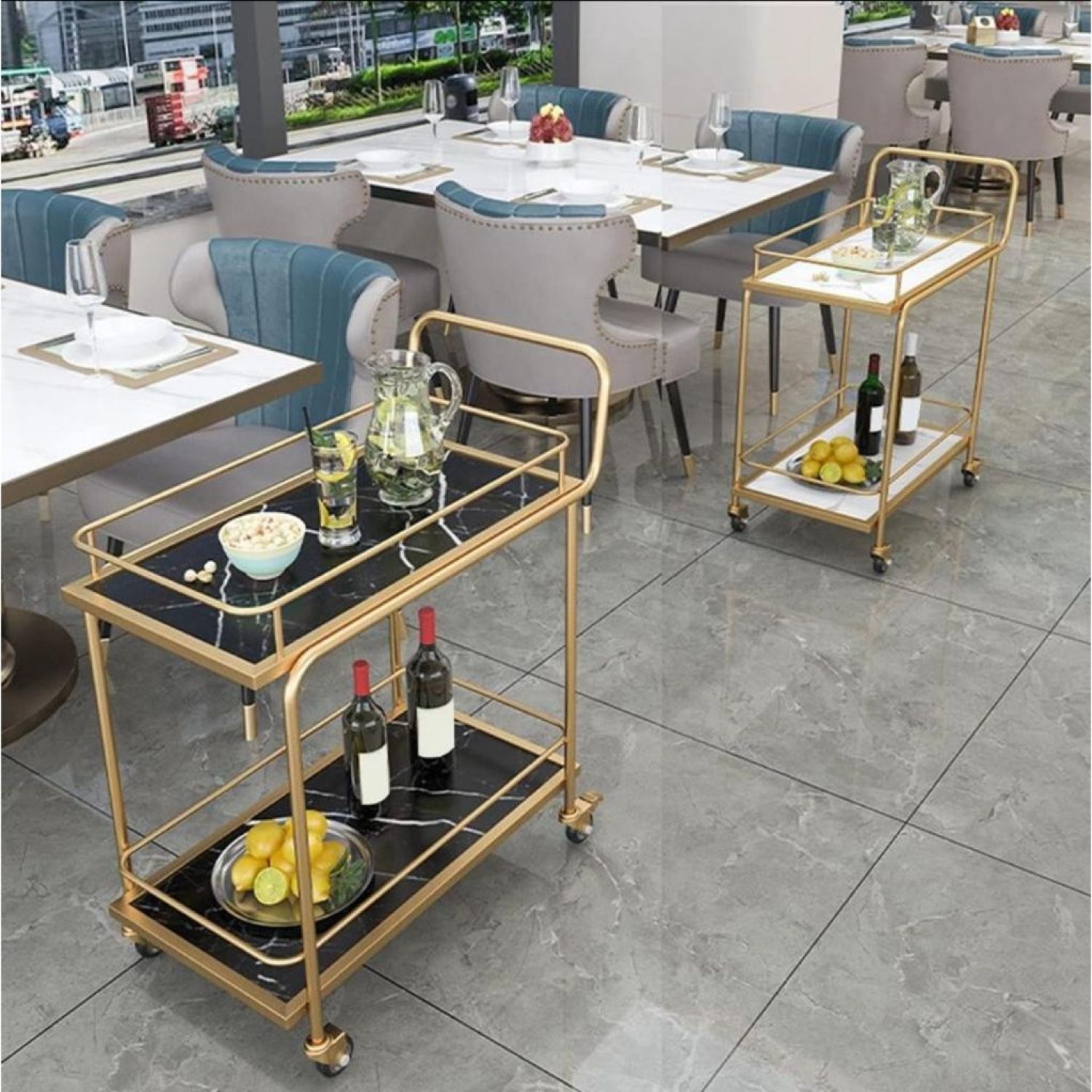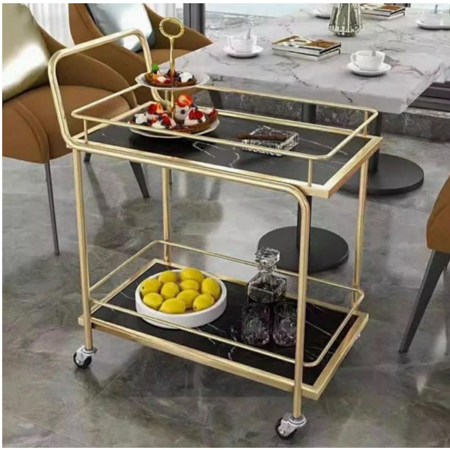 With a mobile design with flexible wheels and a convenient brake setup, this versatile service cart ensures stable parking throughout your home. Its multifunctional design accommodates dishes, drinks, desserts, and tableware effortlessly. The trolley is easy to clean. the flexible rotating wheels make pushing and pulling convenient. ideal for bars, restaurants, hotels, cake shops, and homes.