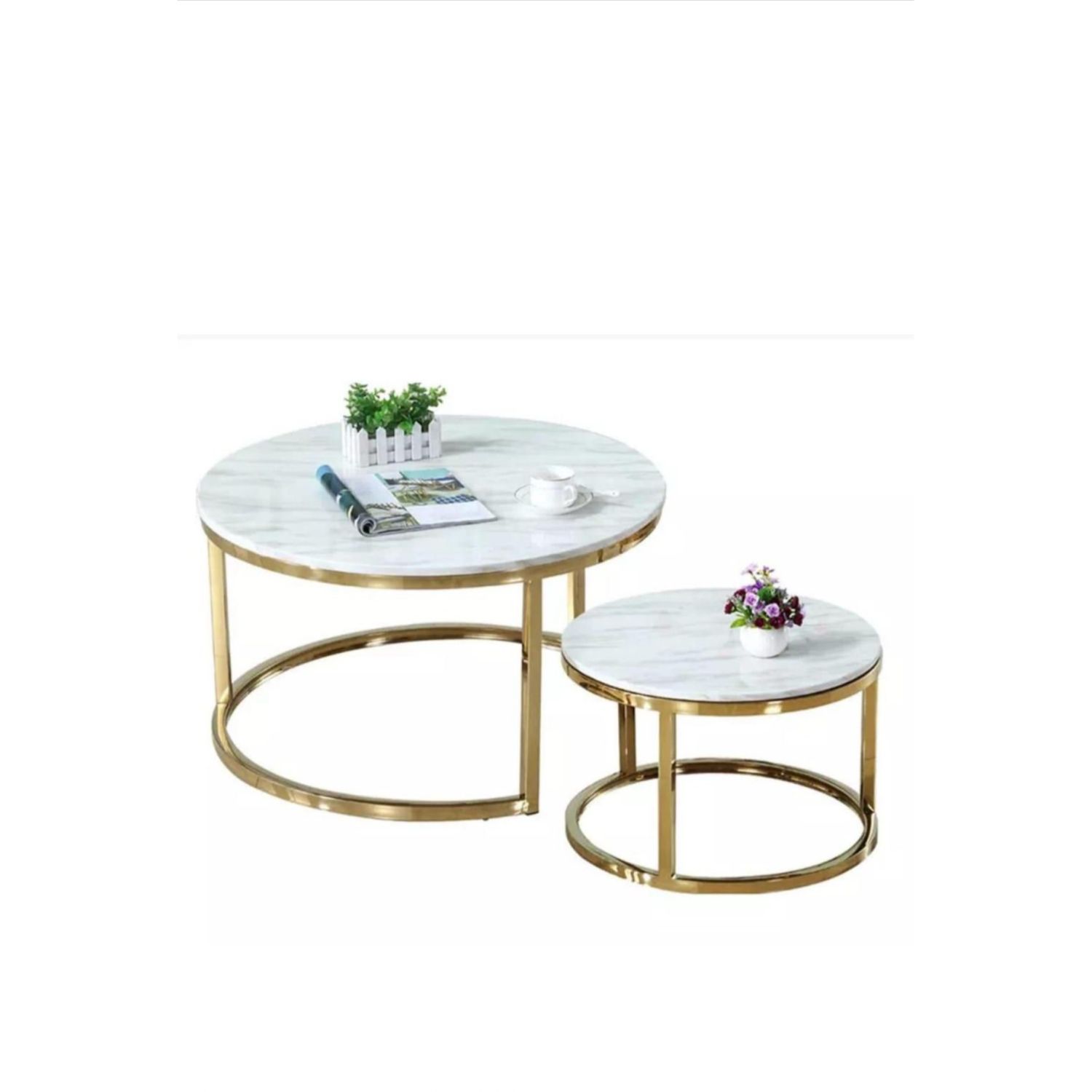 Discover superior quality with our Marble top Nesting Coffee Tables. The modern mid-century design complements any decor, ideal for home, office, living room, lobby, or reception. Customize your setup with versatile arrangements, and brighten your space with glossy metal geometric lines and a marble veneer wooden top. Perfect as a cocktail table, lamp table, snack table, or balcony table.