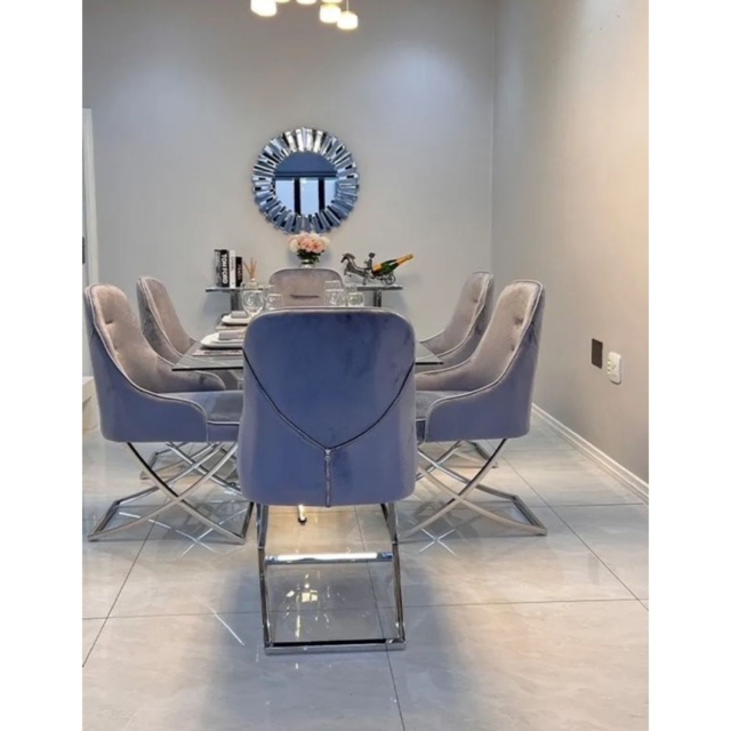 - Options grey velvet chairs with chrome legs