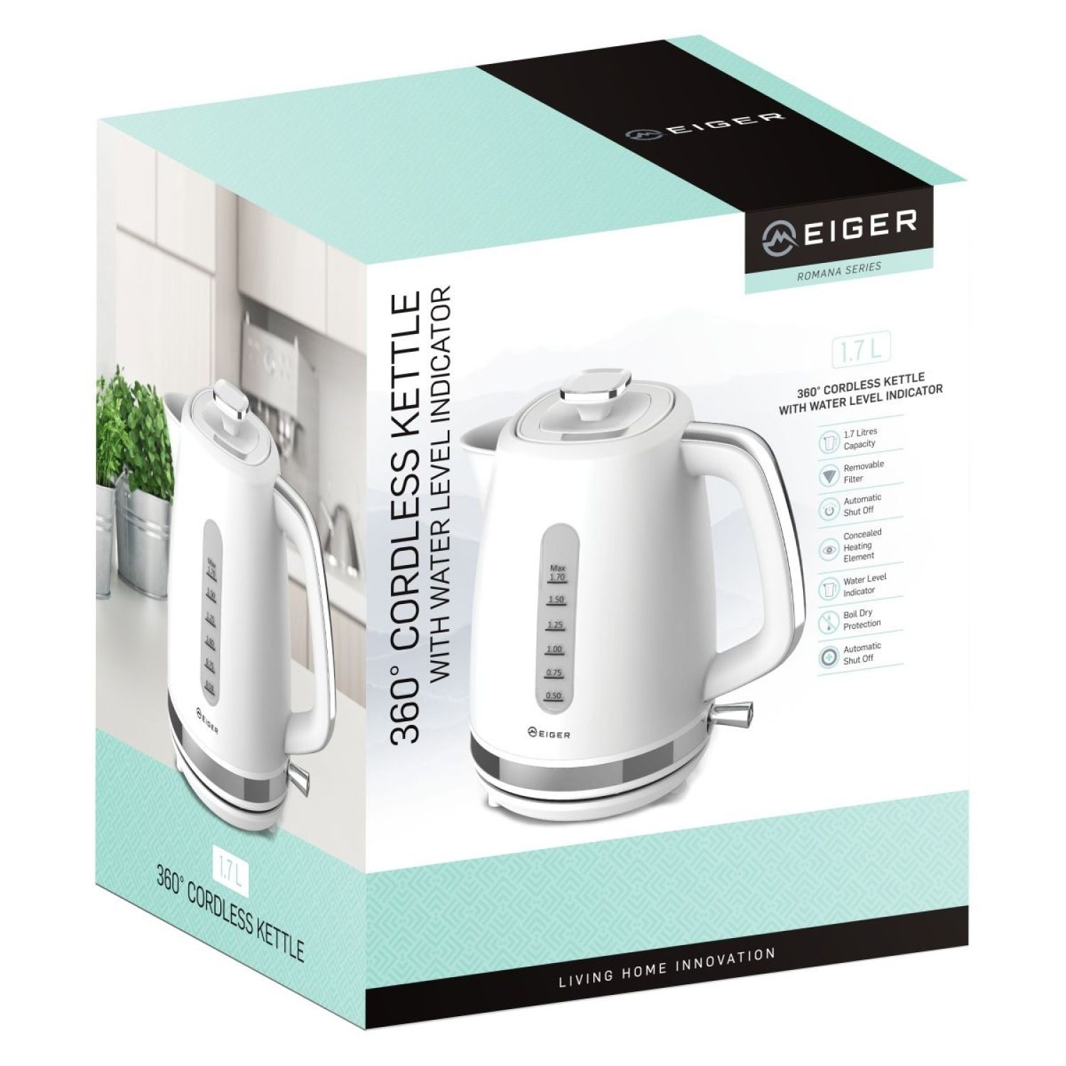 The stylish Romana Kettle from Eiger is sure to make a statement in your kitchen. Available in Black or White, the understated design will add s stylish contemporary & retro look to your kitchen, while the high-quality features ensure that the product performs to the highest international standards.
