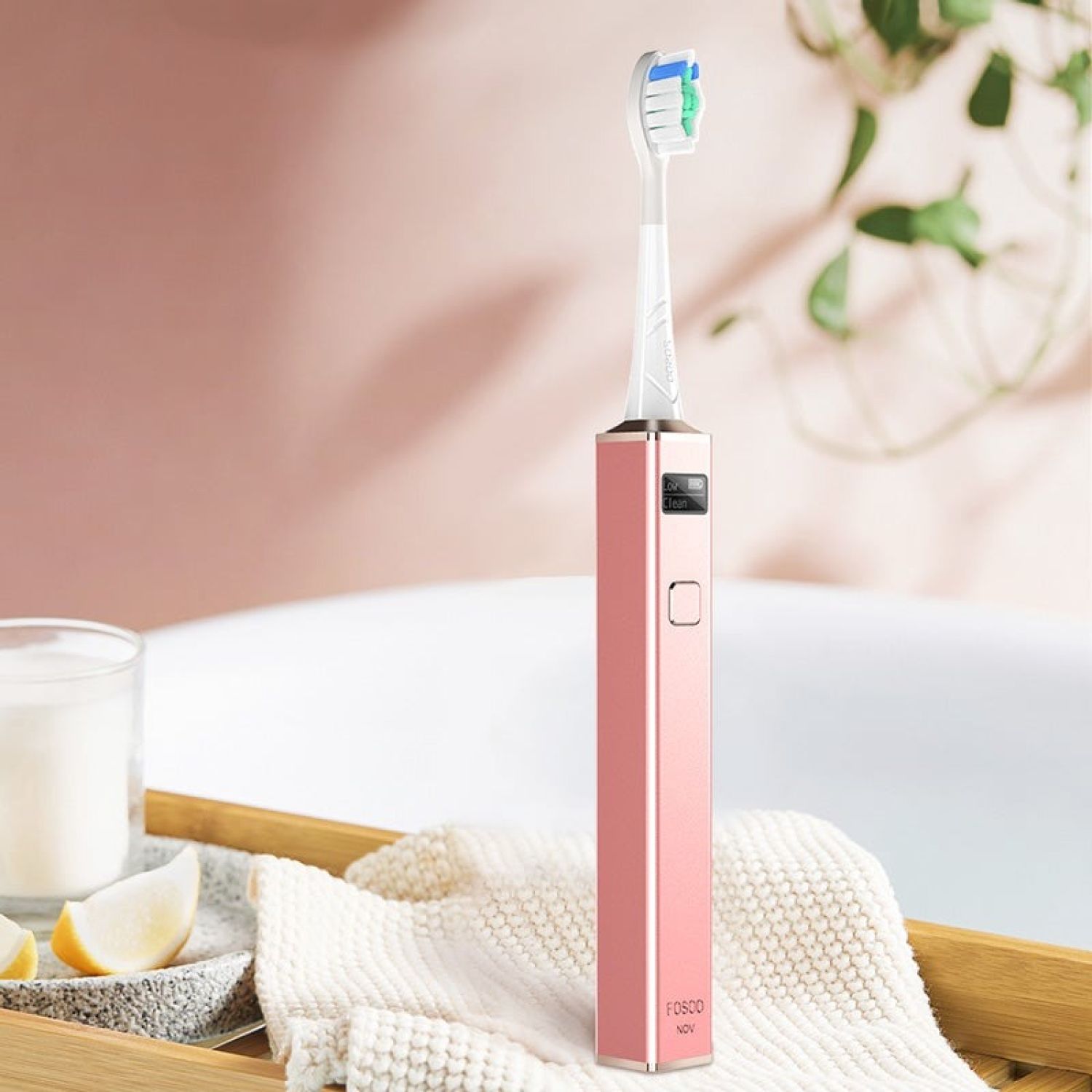 Sonic power toothbrush vibrating at 38, 000 RPMs delivers a gentle yet effective clean.2-minute timer pulses every 30 seconds to help you brush for a dentist-recommended 2 minutes.3 brushing modes: Clean, White, Gum Care. 3 intensities: Low, Medium, High.Lasts 90 days between charges. IPX 7 waterproof metal handle, safe to use in the shower.2 brush heads. One for daily clean, one for sensitive teeth and gums. What you get: 1 NOV Sonic Electric Toothbrush, 1 Clean Brush Head, 1 Sensitive Clean Brush Head, 1 Magnetic Wireless Charging Base name Electric Toothbrush Handle Material Metal Zinc Alloy Color Pink&Blue&Black Feature Wireless charging Usage Home Hotel Traveling Certification FCC CE RoHS Waterproof IPX 7 Vibration 32400-38400 strokes/min Shape Square Size 20.4*20.4*234mm
