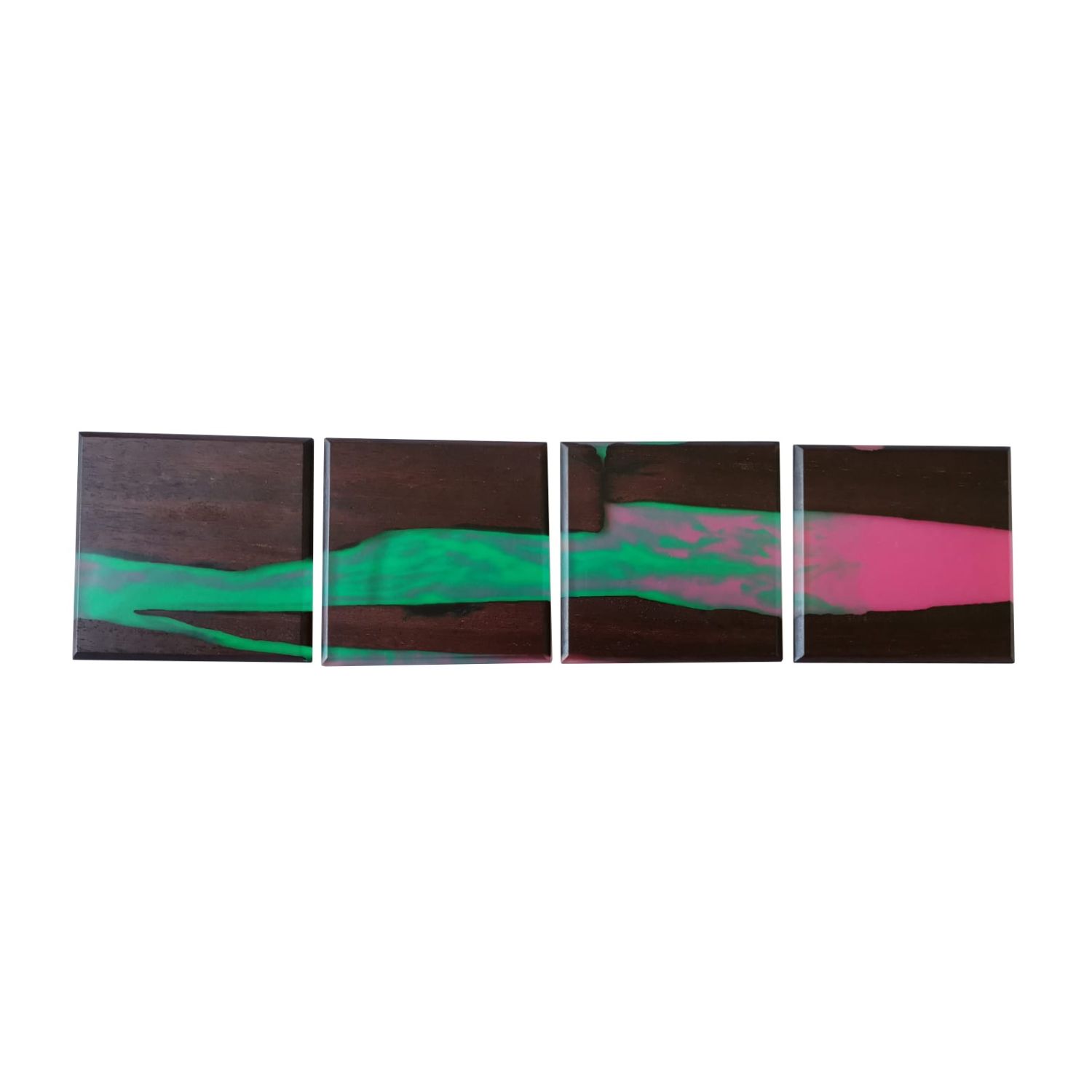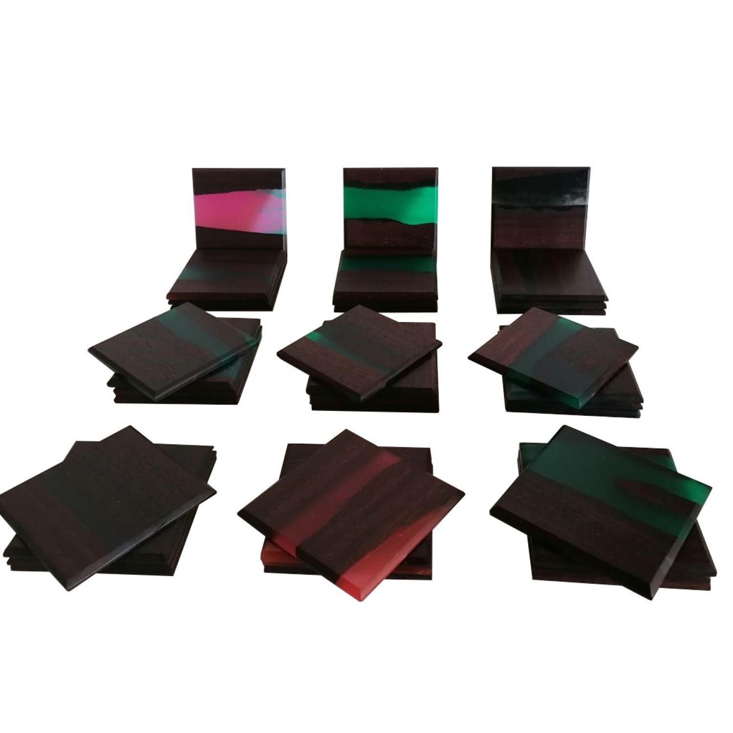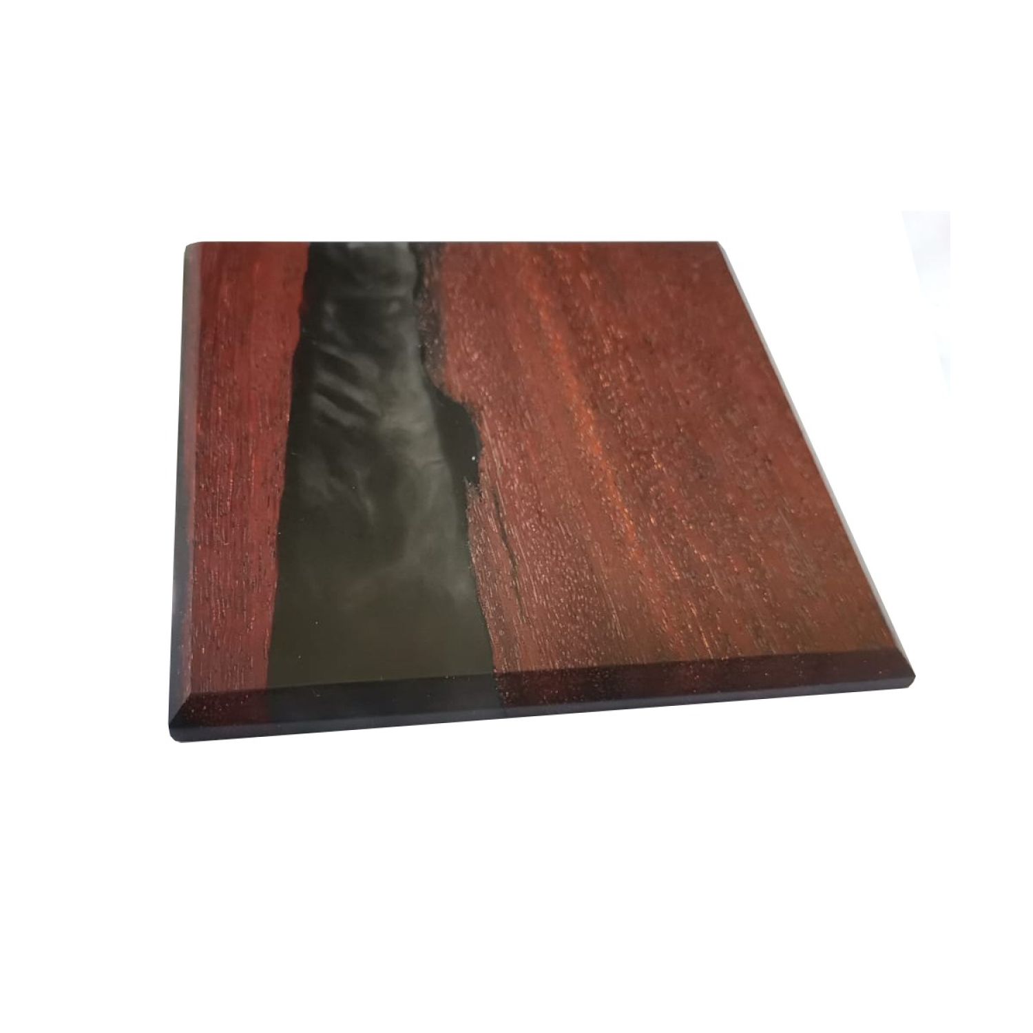 Handcrafted from reclaimed hardwoods molded in epoxy creating a seemless river. Our products are finished with a high quality eco friendly food safe and water resistant sealer.