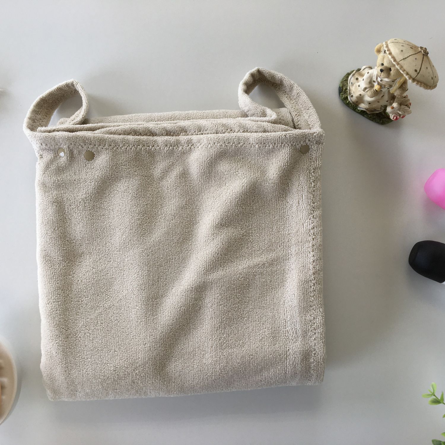 A wearable bath sheet that serves two purposes, toweling dry and as a robe for covering up. The towel material is soft and durable fabric that complement the classy feeling. The trimming enhances the colour of the Towel Robe and makes it stand out!