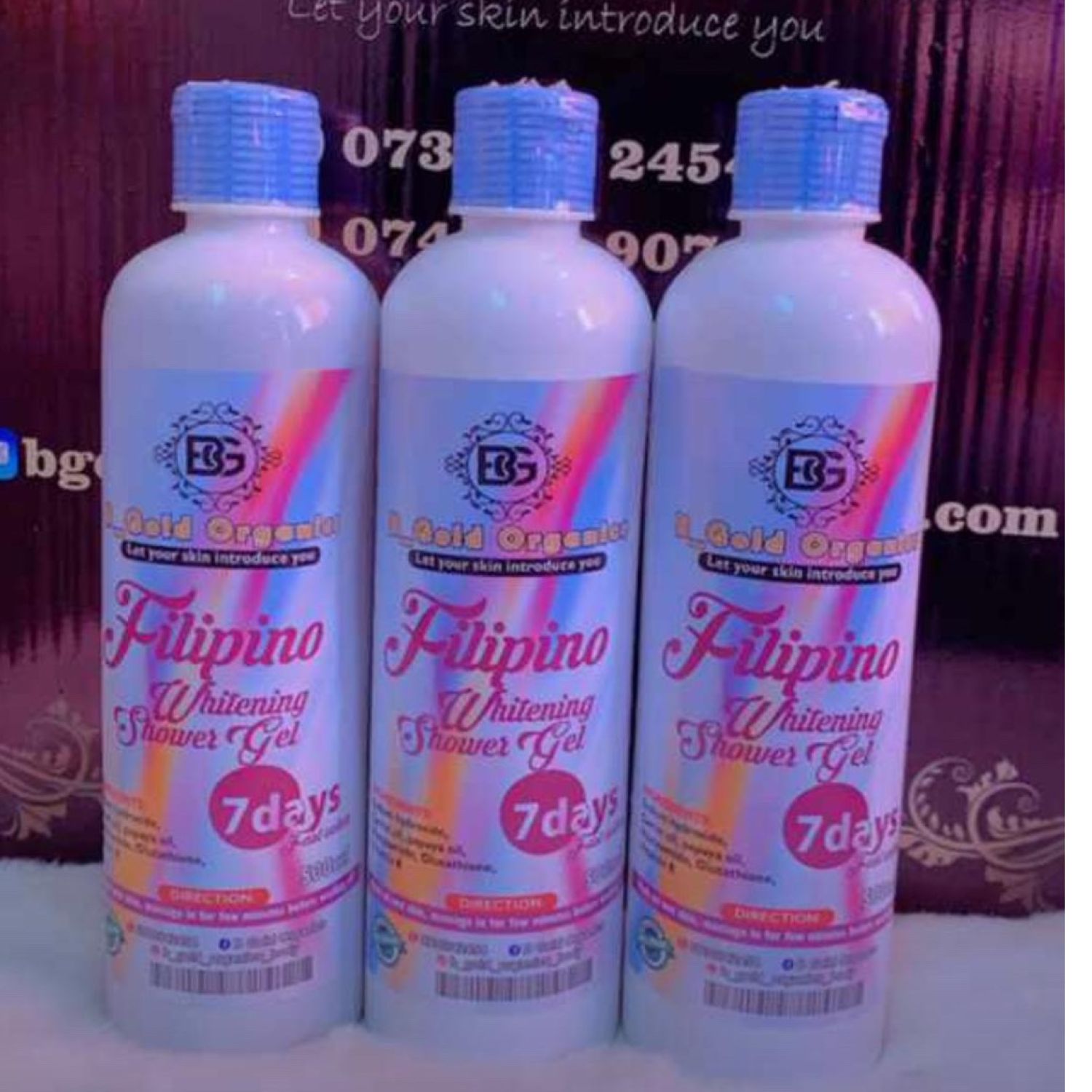 Filipino whitening shower gel is a liquid gel bathing soap for skin lightening and smoothening, it’s an exfoliating soap helps to exfoliate dead skin cells leaving the skin beautiful,glowing and flawless.