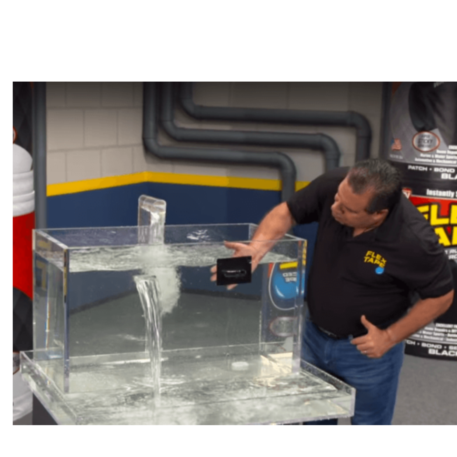Flex Tape strong rubberized waterproof tape stops leaks instantly. Flex Tape as seen on TV grips on tight and bonds instantly creating a super strong waterproof seal. So strong it even works underwater. Triple thick adhesive virtually welds itself to most surfaces. Great for roof leaks, gutter, down spouts, boats, canoes, outdoor and camping gear, PVC and plumbing pipes, pools, spas, ducts, DIY projects and so much more. Use on PVC, acrylic, metal, steel, copper, aluminum, ceramic, glass, rubber, fiberglass, dry wall, cement and so much more.