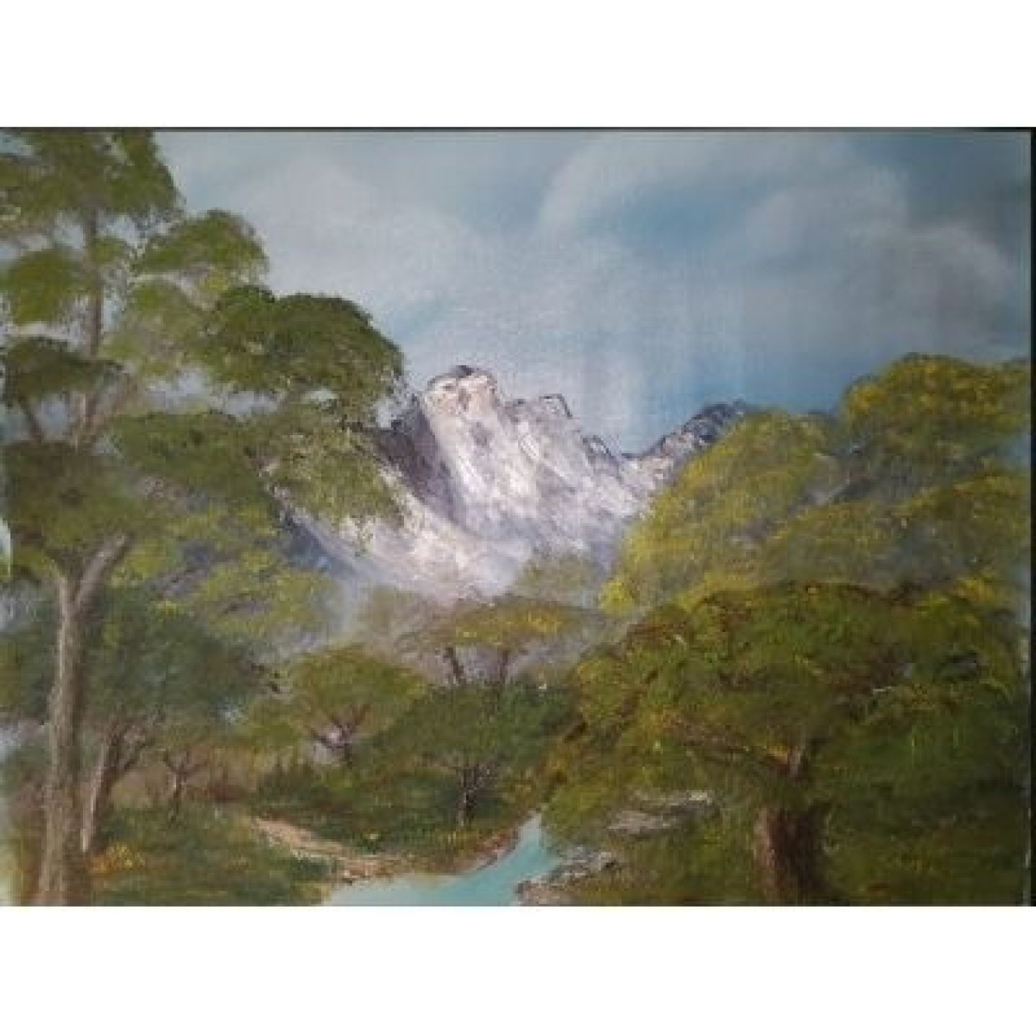 This original oil painting reminds you of the walk you talk alongside the quiet brook on the forest path. The birds calling to each other and the cool breeze coming from the mountain making the walk a pleasant one.