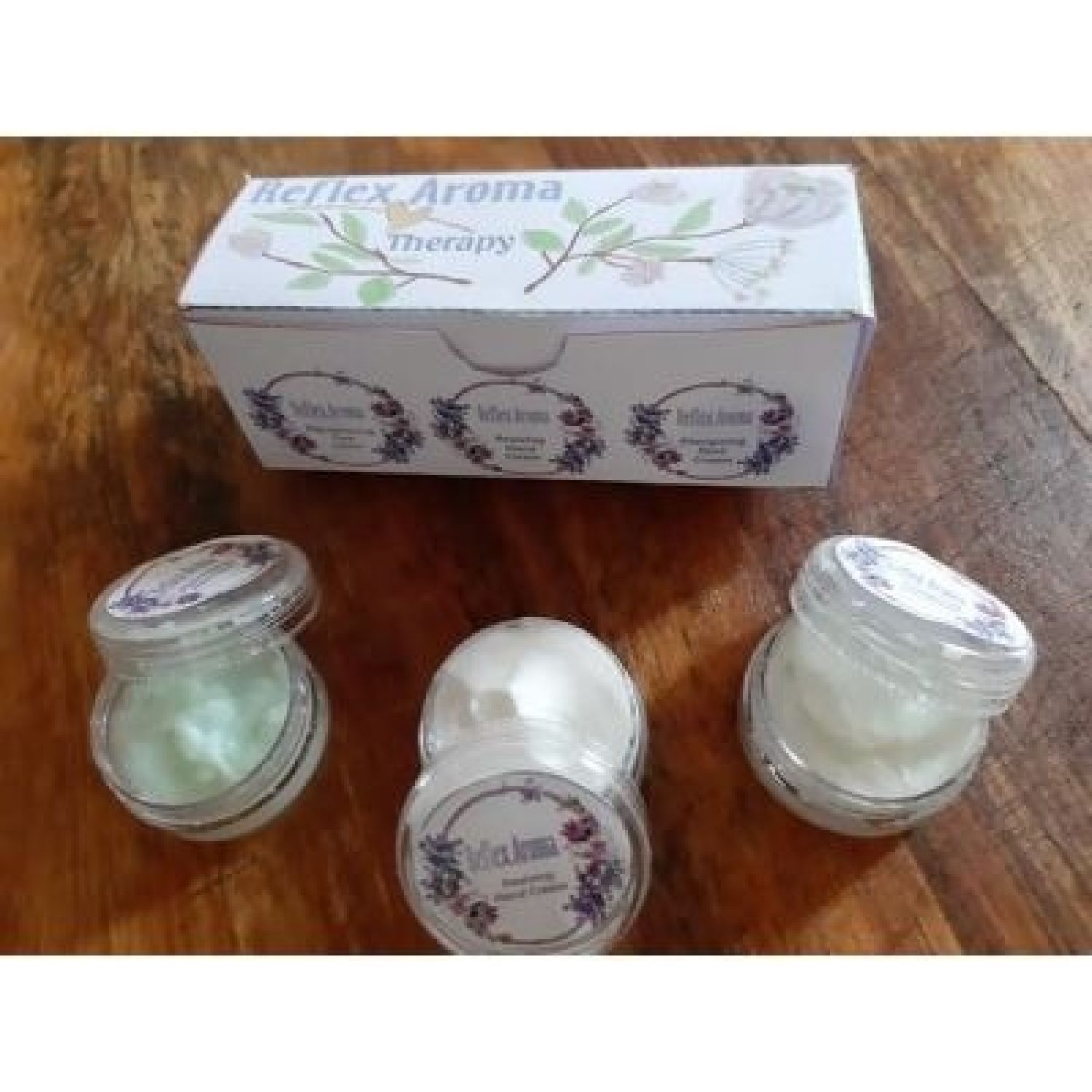 A beautiful packaged gift pack, handy travel pack, with all your natural essentials need in screw cap 10ml bottles, rejuvenating face cream, revitalizing hand cream and energizing foot cream, all made with 100% natural cream bases and infused with aromatherapy oils. These are creams are very rich and therefore only a dime size is needed and must be kept in the fridge as they are totally naturally handmade products.