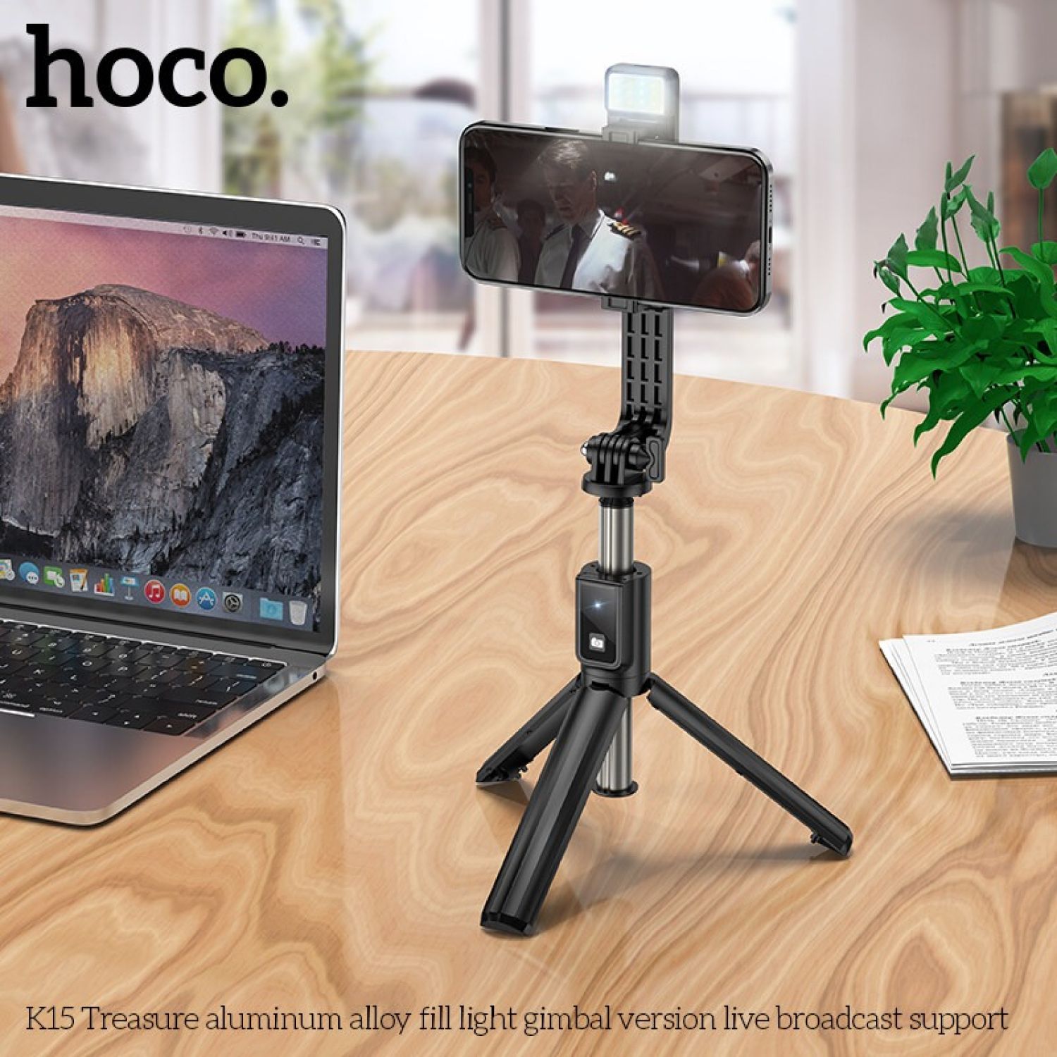K15 Treasure, gimbal version live broadcast stand for 4.7-6.5 inches mobile phones, with fill light and BT remote control, for outdoor and indoor