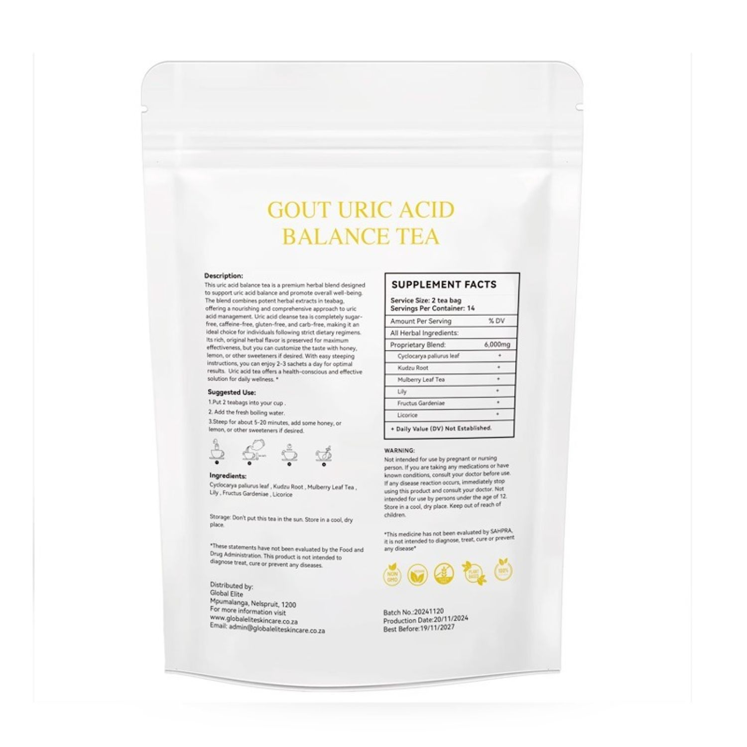 1 x Global Elite Gout Uric Acid Balance Tea