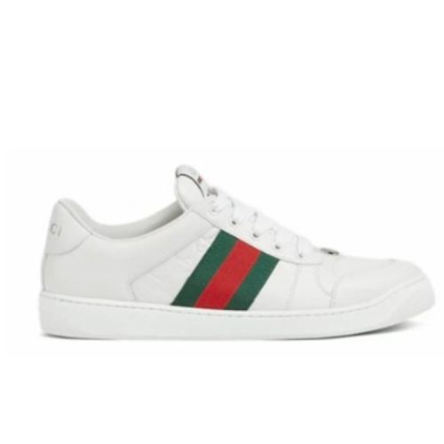 The Gucci Men’s Screener Sneaker blends vintage vibes with modern luxury. Inspired by classic ’70s sportswear, this retro-style shoe features distressed detailing, signature Web stripe accents, and iconic Gucci branding—delivering effortless cool with every step.