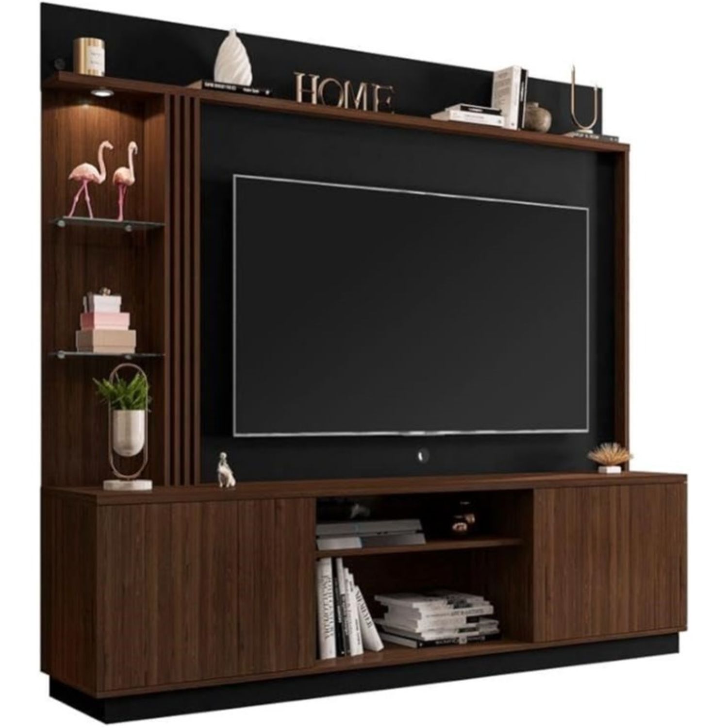 Home Águeda is ideal for your living room! With a modern design and built-in electric LED, it will add much more charm and refinement to your environment. Perfectly supports TVs up to 65 inches. Doors with Soft-Close hinges with ample internal space and 3D slatted painting. Central niches ideal for accommodating speakers, video games, TV receivers, among others. It has ample space to accommodate the most varied types of decorative objects on the top shelf and top made of 25mm MDP, and 6mm glass shelves. Base with built-in casters to facilitate movement if necessary.