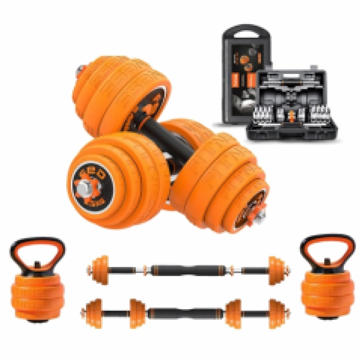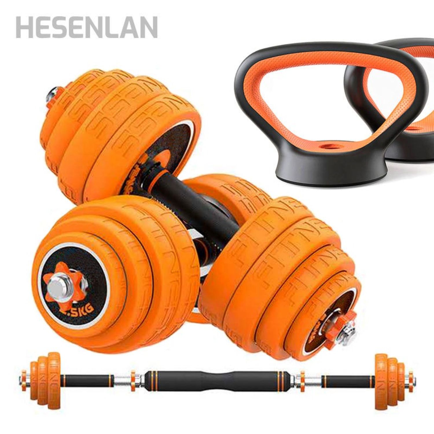 · Solid iron dumbbell bars with ABS rubber grip.