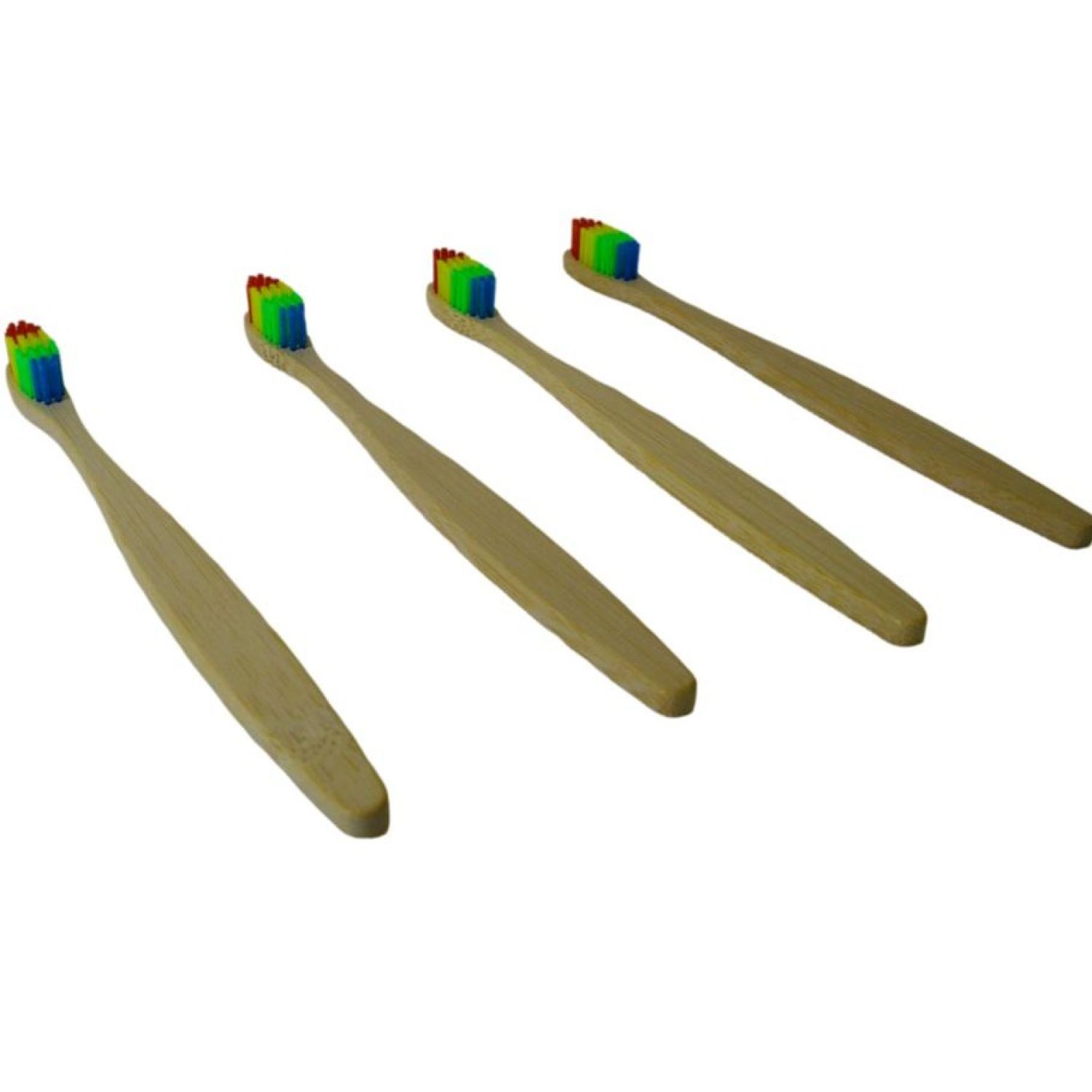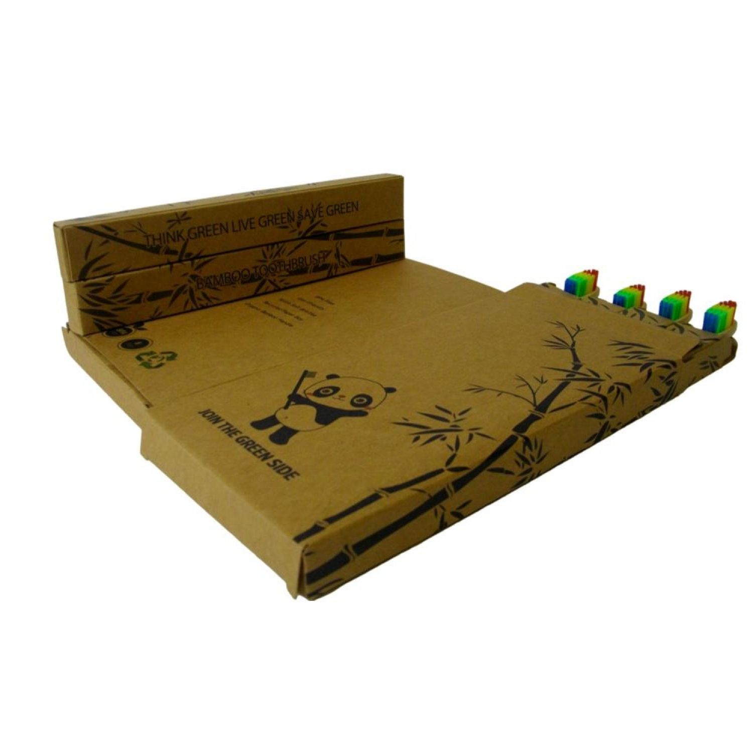 Toothbrush set, 4 pcs/set, medium, adult; Nylon 610 bristles are BPA free, soft, charcoal-infused and one color: iridescence; Flat style bristle; Organic bamboo handles are completely biodegradable , water resistant, light, strong and durable; Recycled paper box, each piece individually packed in one small box; Think green, live green, save green!