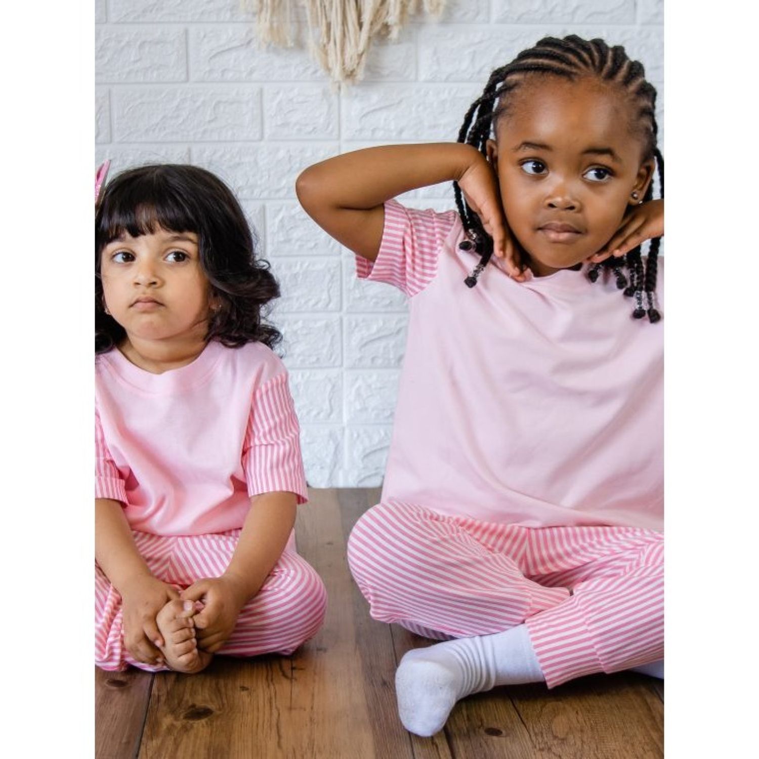 The kiddozwear candy pink Pijama set has an elegant look with the striped sleeves matching the pants,also made with high quality fabrics this outfit is made for comfort