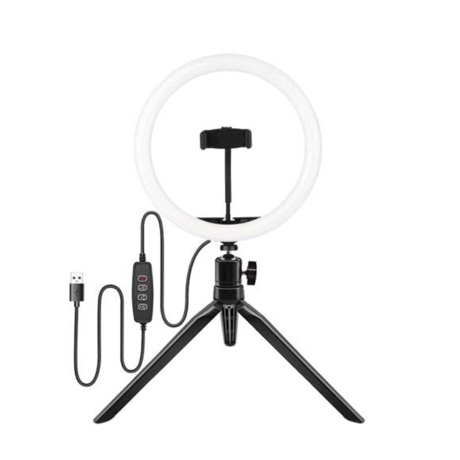 -10’’ Ring Light is built in 10’’ diameter and 120 LED bulbs work at 12W. The 5500K color temperature will remove any unflattering shadows from your face.