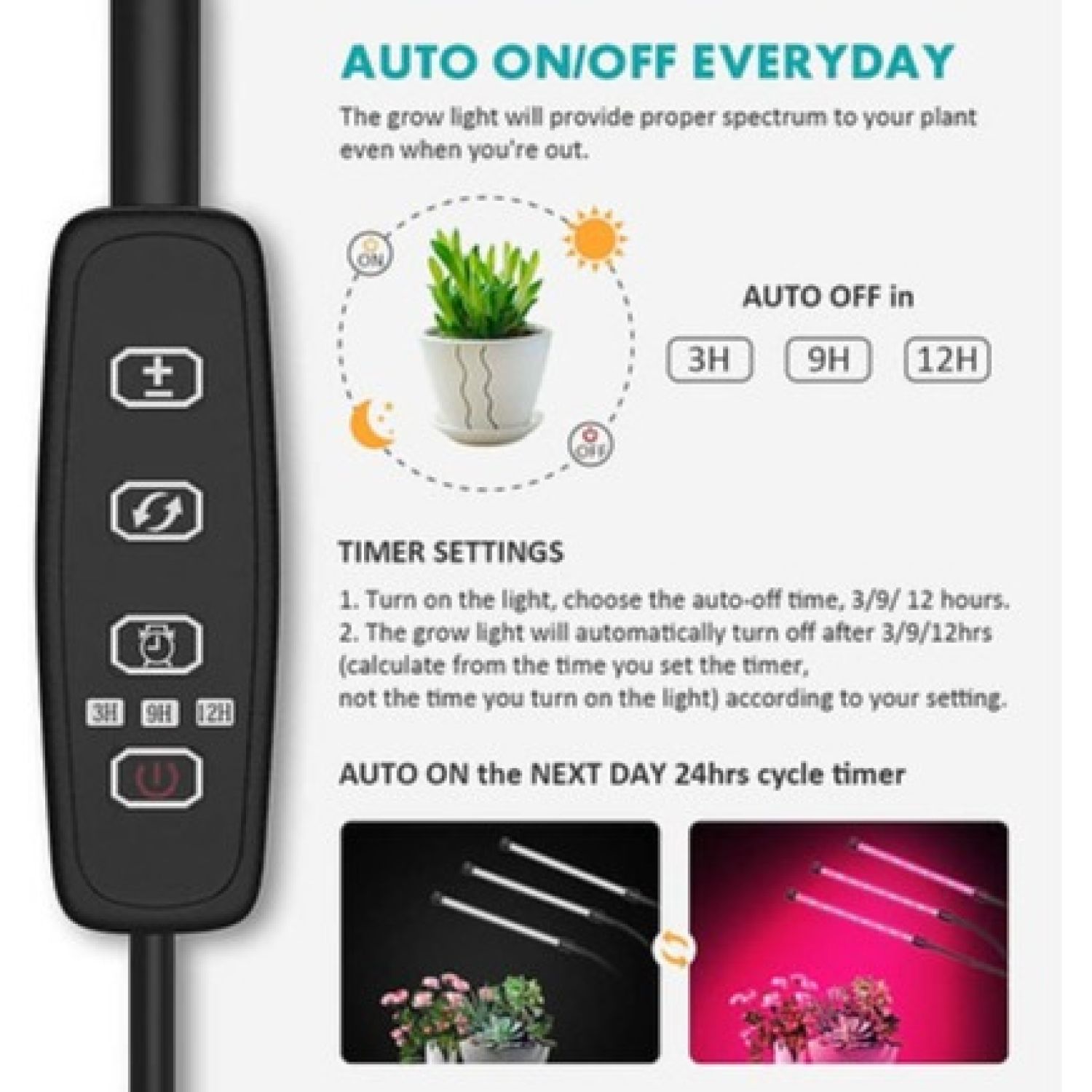 - Intelligent Timing Function & High Quality LED Circuits : Circular - memory time function allows to automatically turn on/off every day according to your settings, which requires no manual operation and takes good care of your plants when you are on work or a vacation.