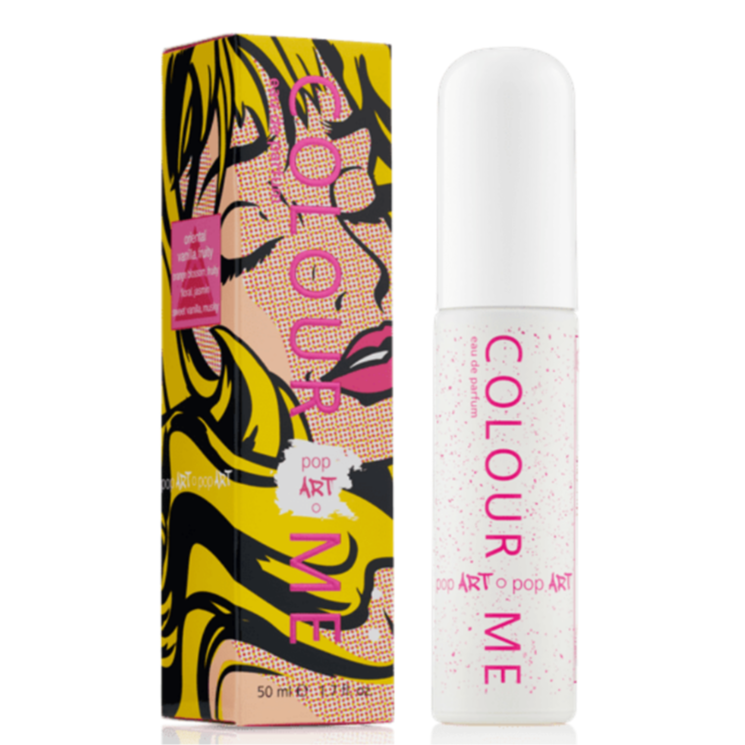 Colour Me Pop Art is a fusion of orange blossom, fruity top notes, floral, jasmin middle notes and vanilla musky bottom notes. It is a fresh and a vibrant scent with a touch of floral.