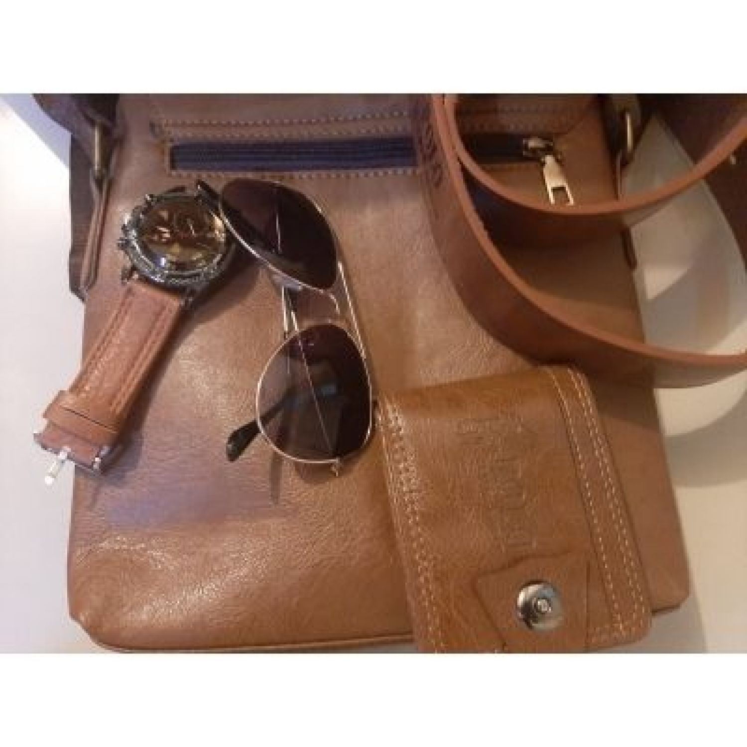BROWN MAN'S HANDBAG WITH ACCESSORIES