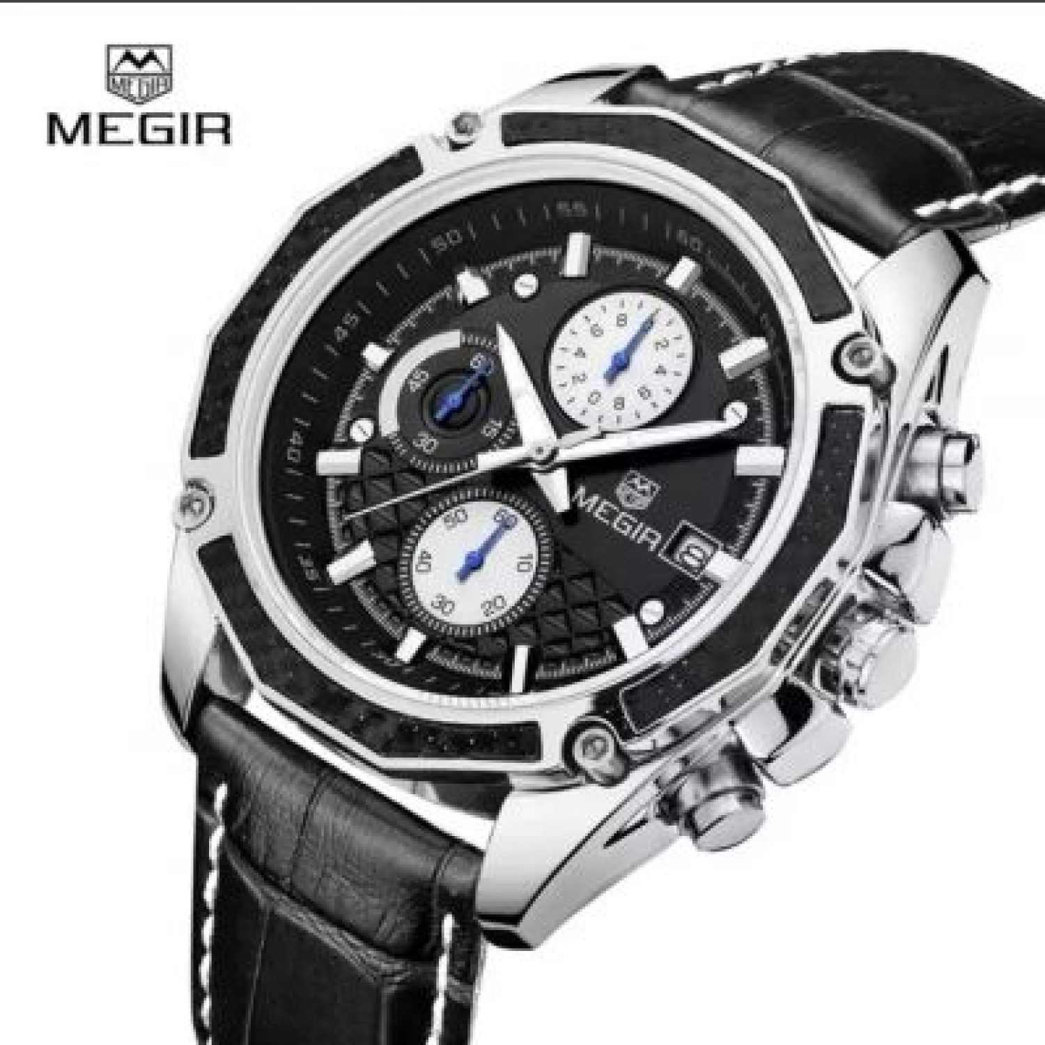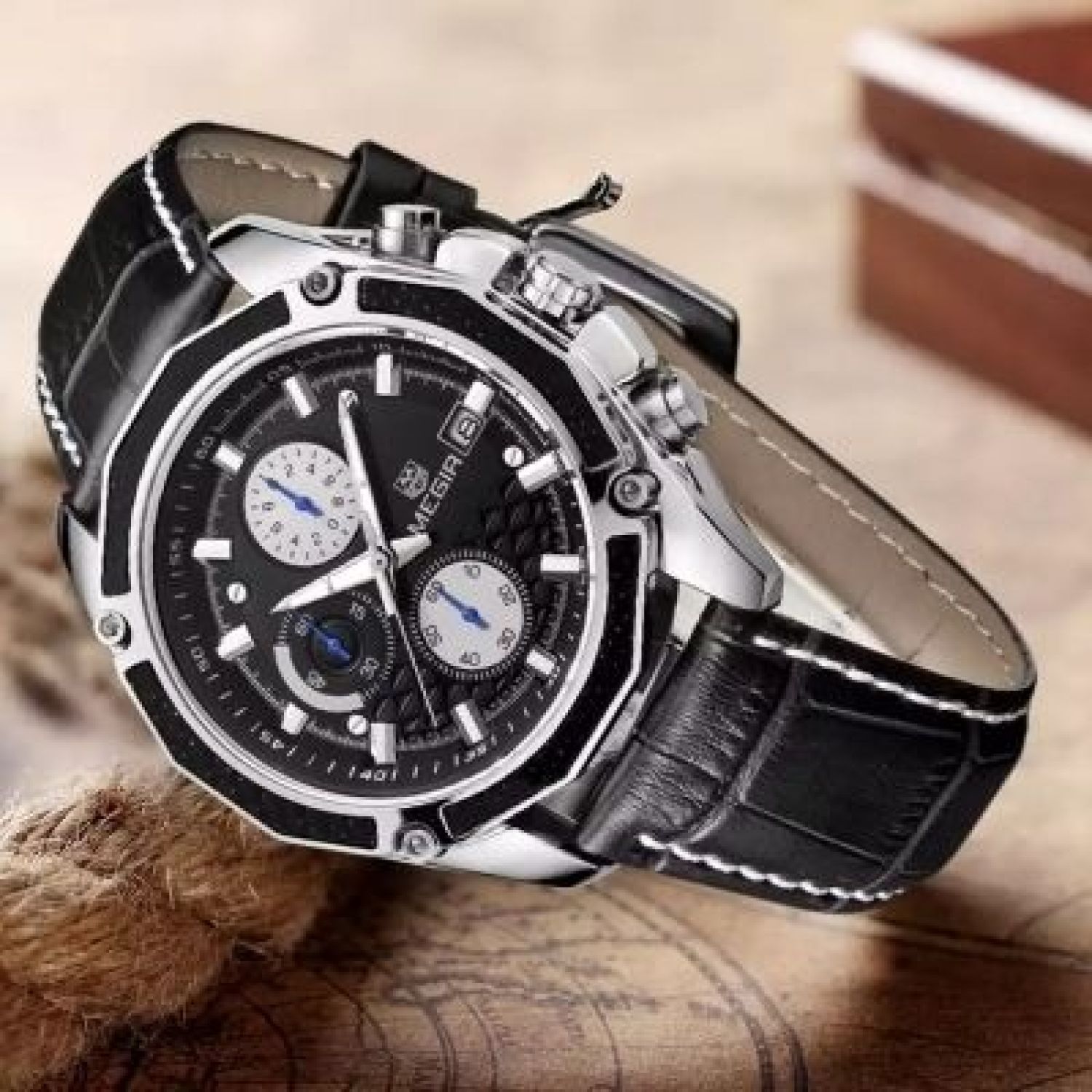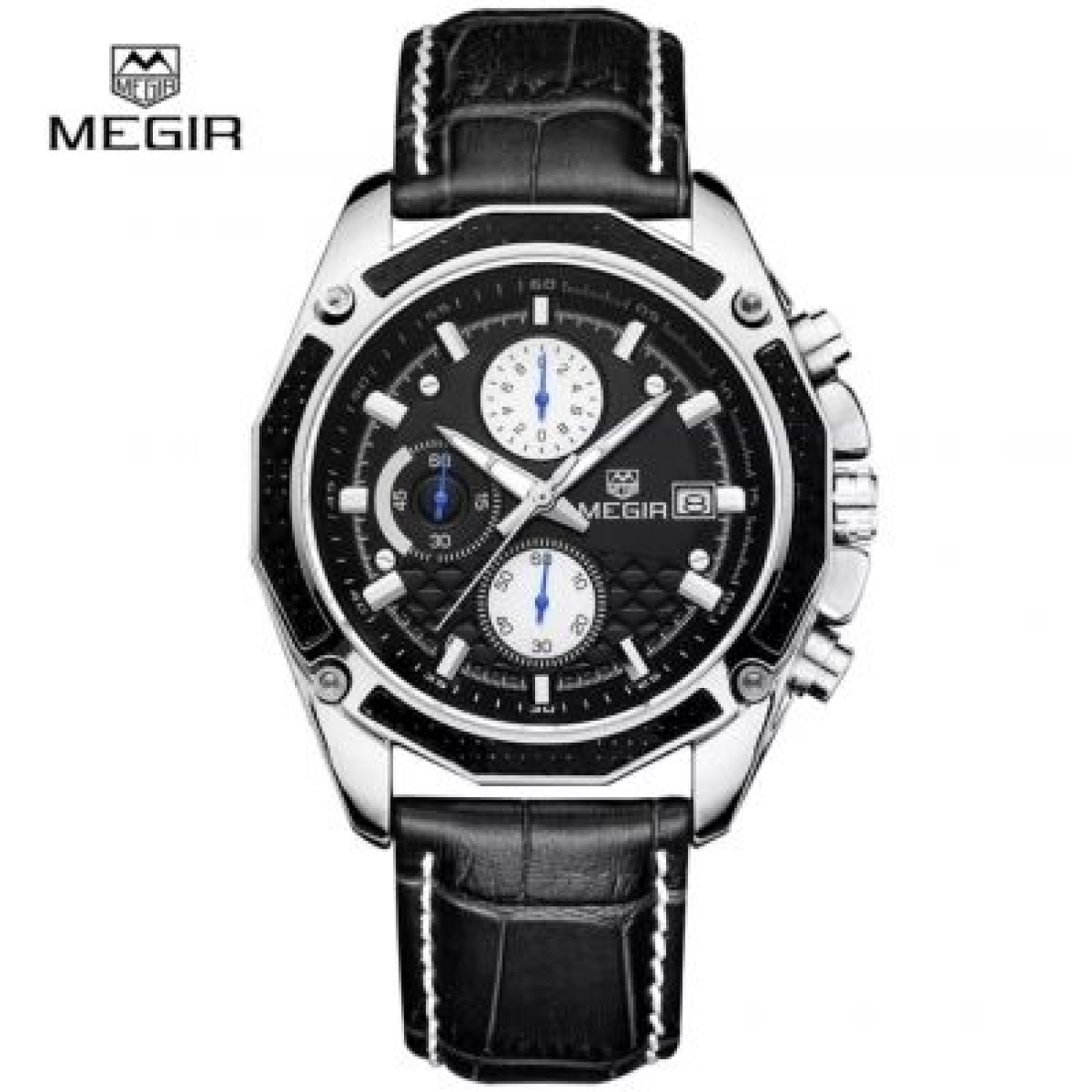 Men's MEGIR Black Leather Watch - FREE SHIPPING