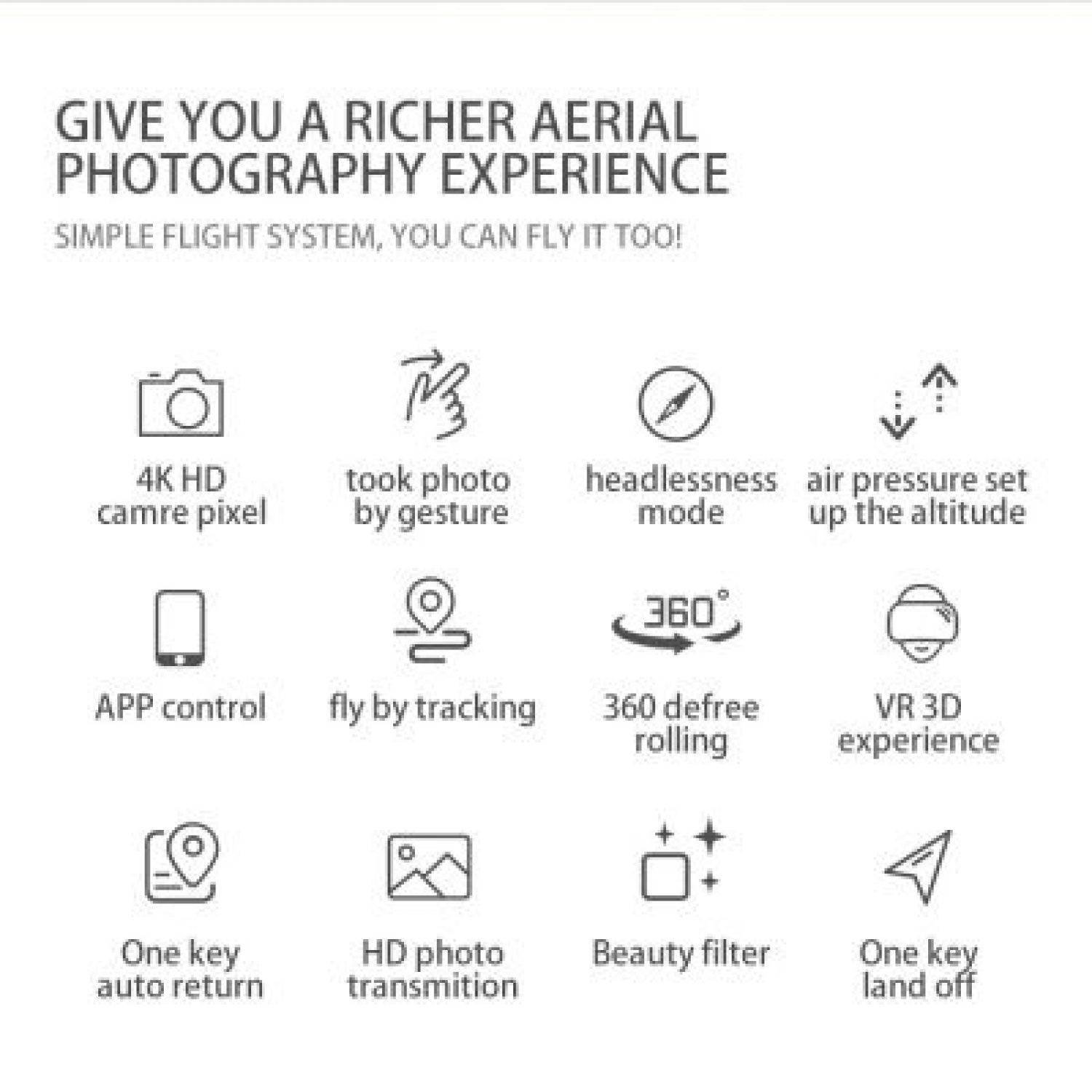 - Built-in 500W pixel /4K pixel HD camera. Surprisingly, it can capture stunning pictures and videos from the sky.