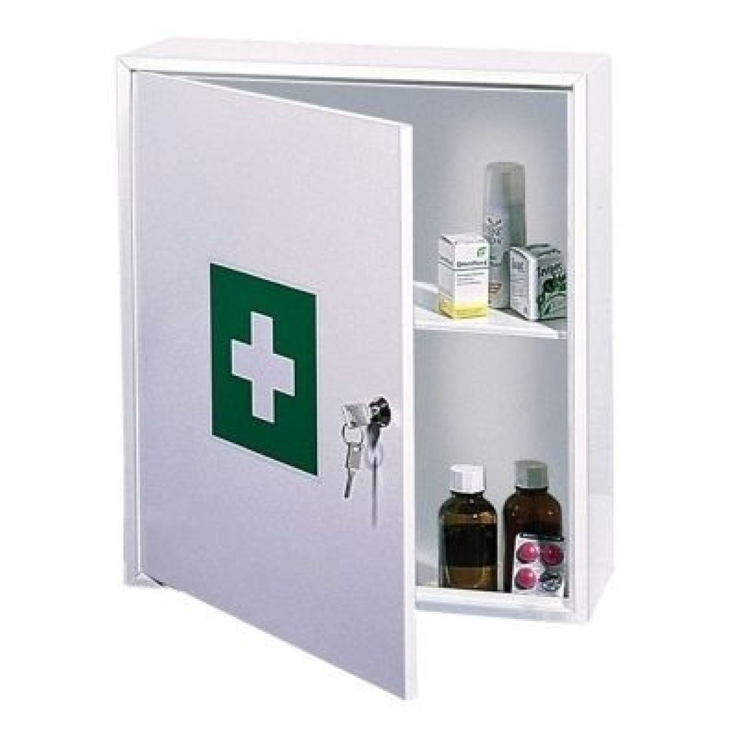 The MK 1 medicine cabinet is elegant and the perfect solution for the organisation of medicines and other medical aids. It also provides protection from unauthorized access by children and other persons. The MK 1 is protected by a double bitted key lock, which is supplied with 2 keys. The unit has 1 shelf. It is supplied with fixing material for easy wall mounting and a sticker for the door to make the medicine cabinet complete. Body and door made of sheet-steel. Including fixings (for wall fixing) and stickers. Supplied with 1 shelf. Supplied with 2 keys.. The MK 1 medicine cabinet is elegant and the perfect solution for the organisation of medicines and other medical aids. It also provides protection from unauthorized access by children and other persons. The MK 1 is protected by a double bitted key lock, which is supplied with 2 keys.
