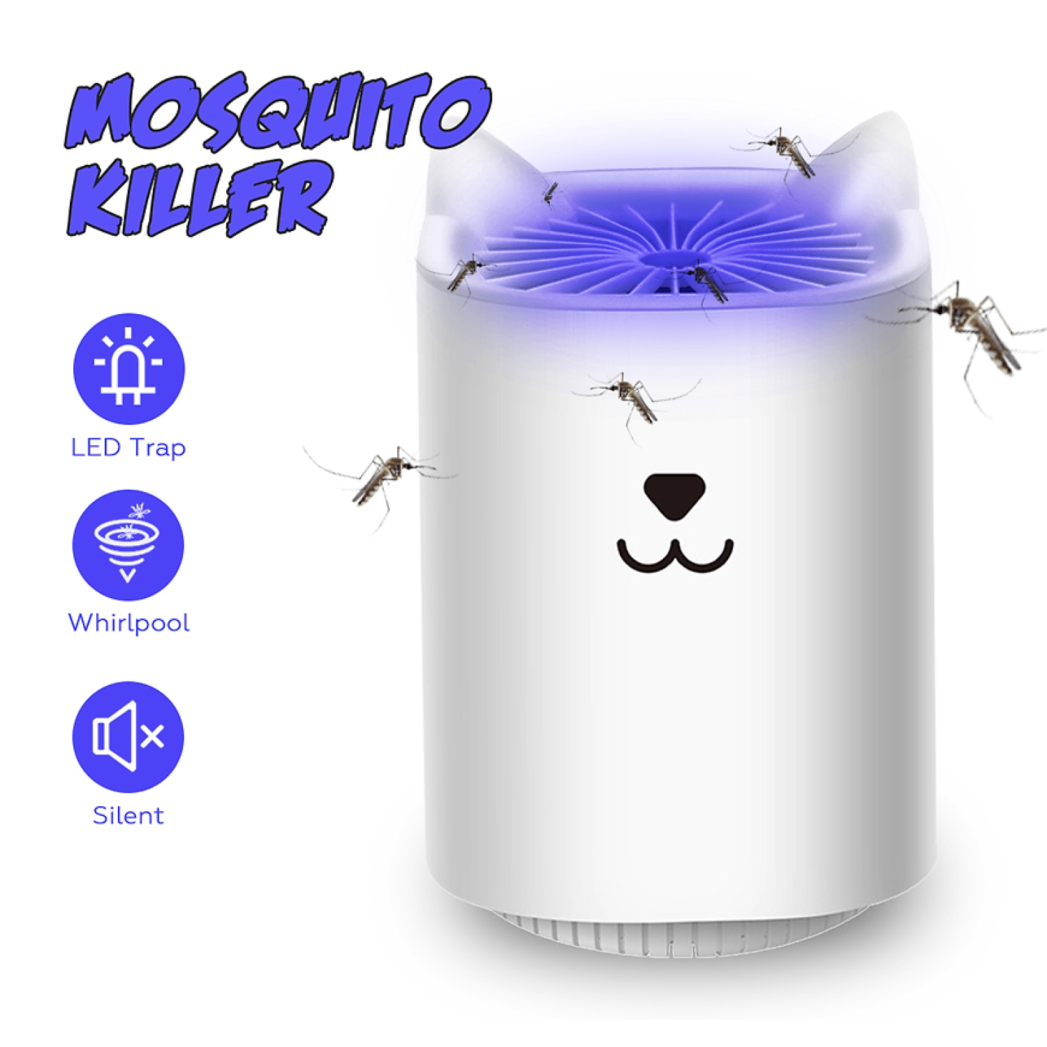 Safely and quietly ward off mosquitos by purchasing the mosquito killer lamp. Features: - Efficient and energy-saving - The purple light attracts the mosquitos and inhales them with the fan - Environmentally friendly - Quiet operation - Easy to clean - Powered by USB What's in the box 1 x Modern mosquito lamp