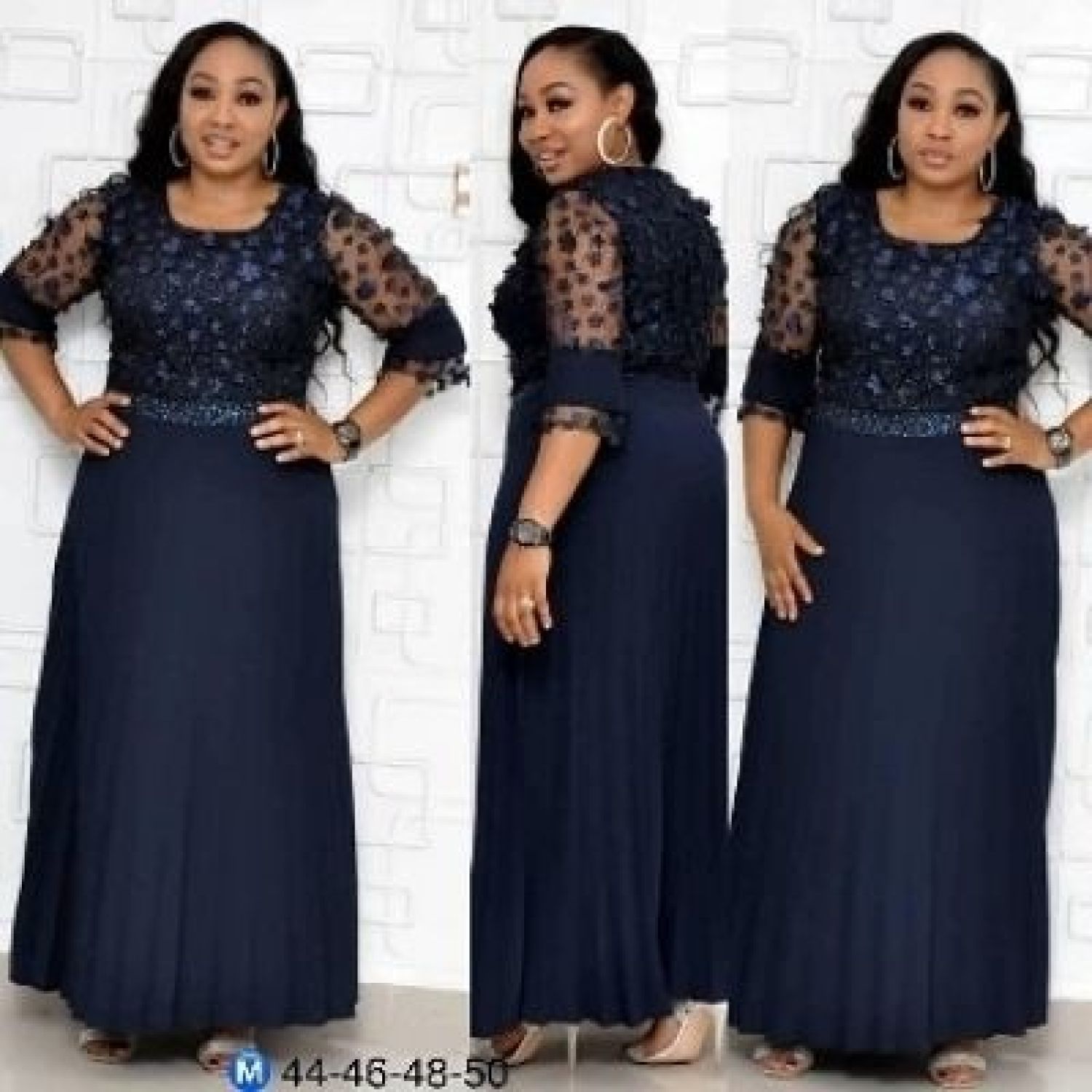 navy blue maxi dress with pleats