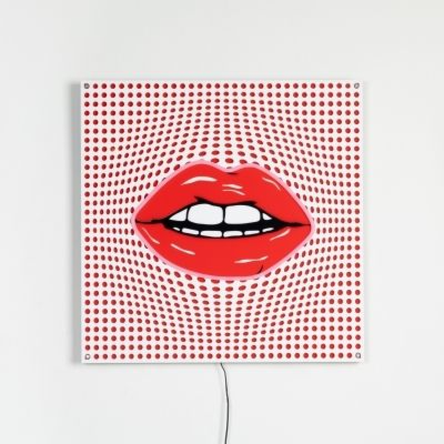The outside of the lips light up in pink neon. Each colour used in our Pop Art are cut separately from plexiglass and only upon layering them together can we appreciate the image designed.