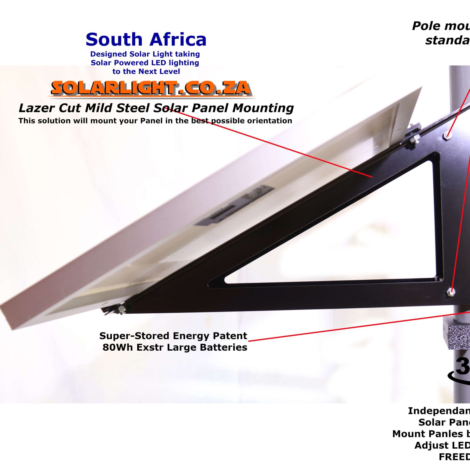 The system from solarlight.co.za incorporates a high-capacity lithium-ion battery with a storage potential of 80Wh. This energy-dense battery ensures prolonged operational periods and consistent light output, even in suboptimal solar conditions. The battery's high charge and discharge efficiency, coupled with a robust lifecycle, makes it an ideal energy storage solution for the system.