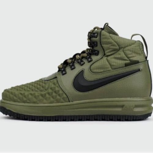 Built for all-weather wear, the Nike LF1 Lunar Air Force 1 Duckboot 2017 in Medium Olive Green fuses iconic AF1 heritage with rugged outdoor performance. Featuring a water-resistant upper, durable rubber outsole, and Lunarlon cushioning, this boot-sneaker hybrid delivers comfort, traction, and bold street style. Perfect for winter, rainy days, or making a strong style statement.