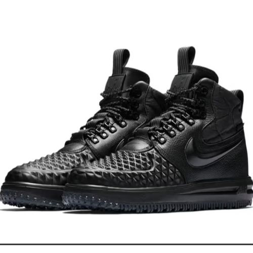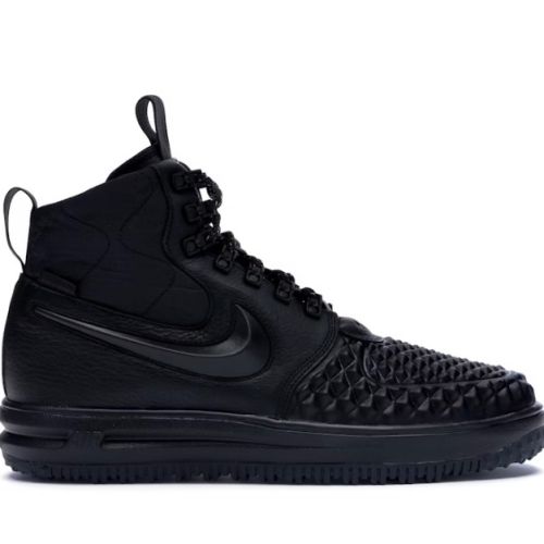 The Nike Lunar Force 1 Duckboot in Black combines the legendary Air Force 1 design with rugged durability. Featuring a water-resistant upper, Lunarlon cushioning, and an aggressive traction outsole, this sneaker-boot hybrid is built to handle tough weather without sacrificing style. Sleek all-black construction makes it versatile for both streetwear and outdoor use.