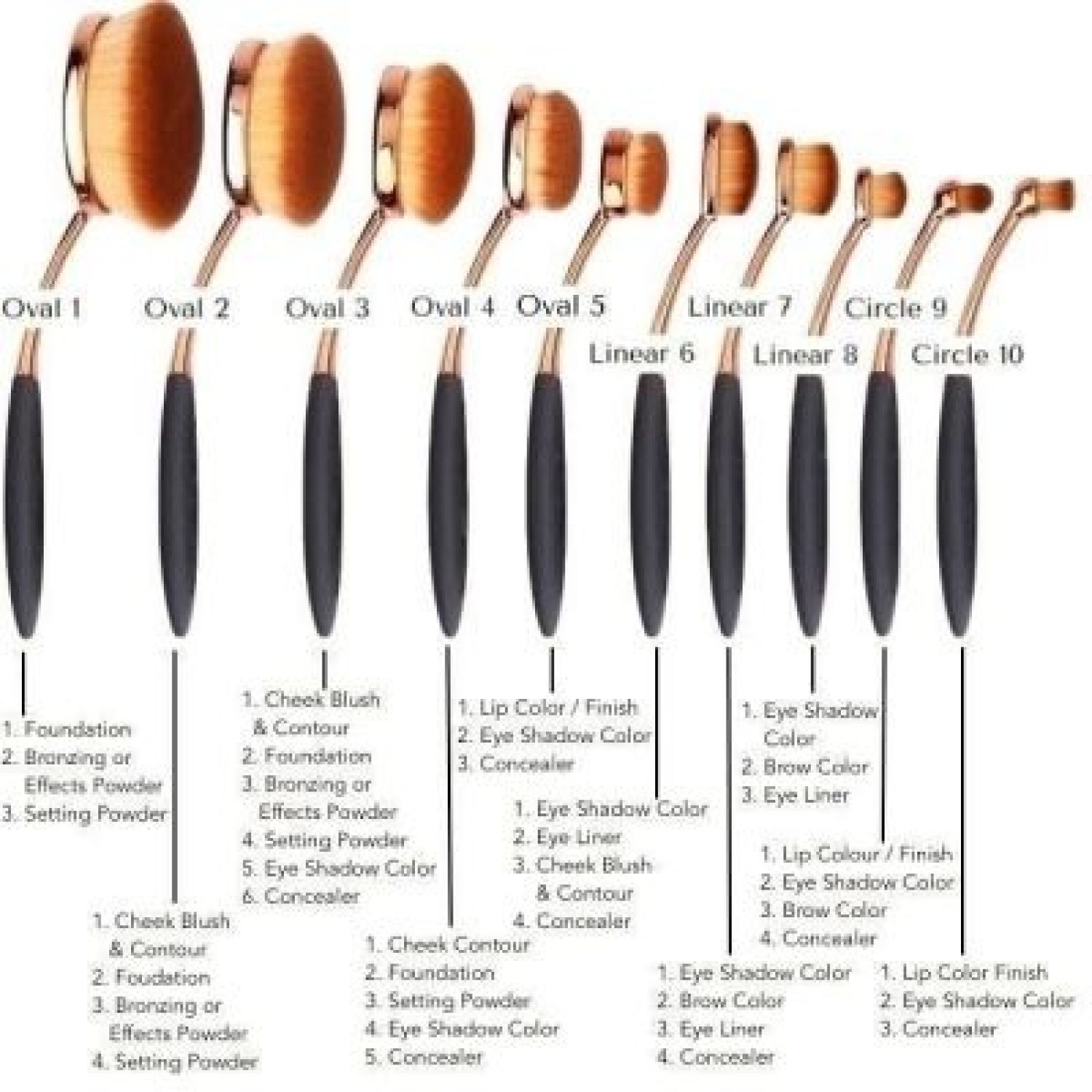 - Versatile: Oval Brushes can be used for foundation cream, Contouring even Power, eye and lip makeup. Oval brush is perfect for even application of body tanning lotions