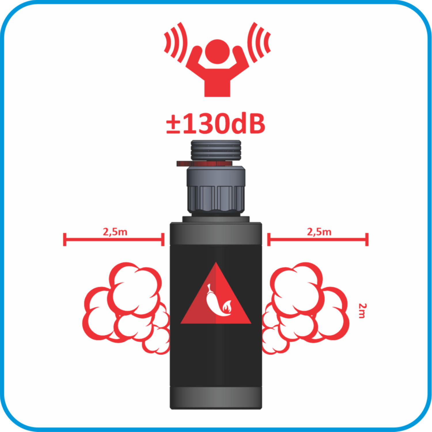 Duke Pepper Storm has a detonation time of approximately 4 -5 seconds, which offers the thrower enough time to lob the device into the desired area, but not enough time for the targets to escape the pepper dispersion radius of 5m and 360 degrees around the blast point.
