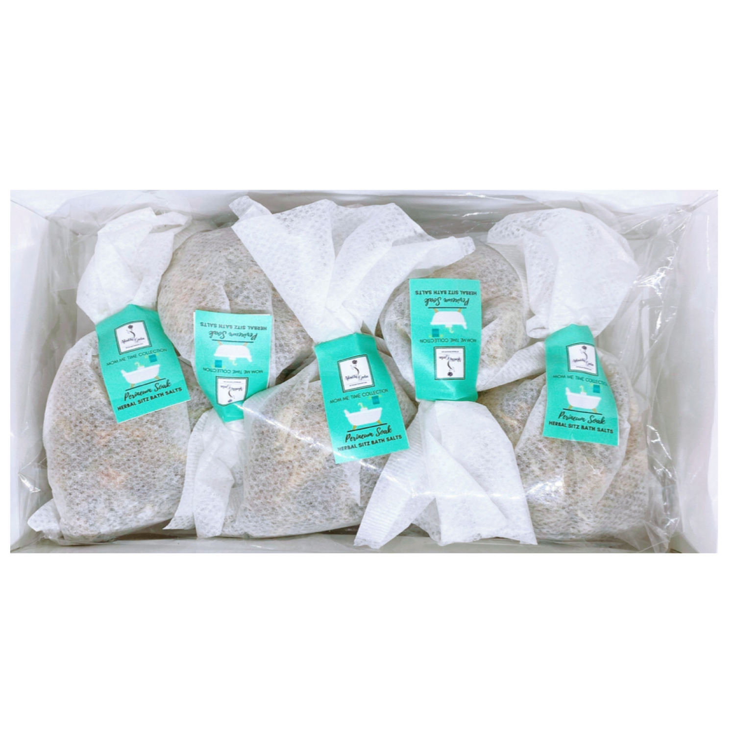 Perineum Soak comes with 5 individual Perineum Soak infusion bath bags.