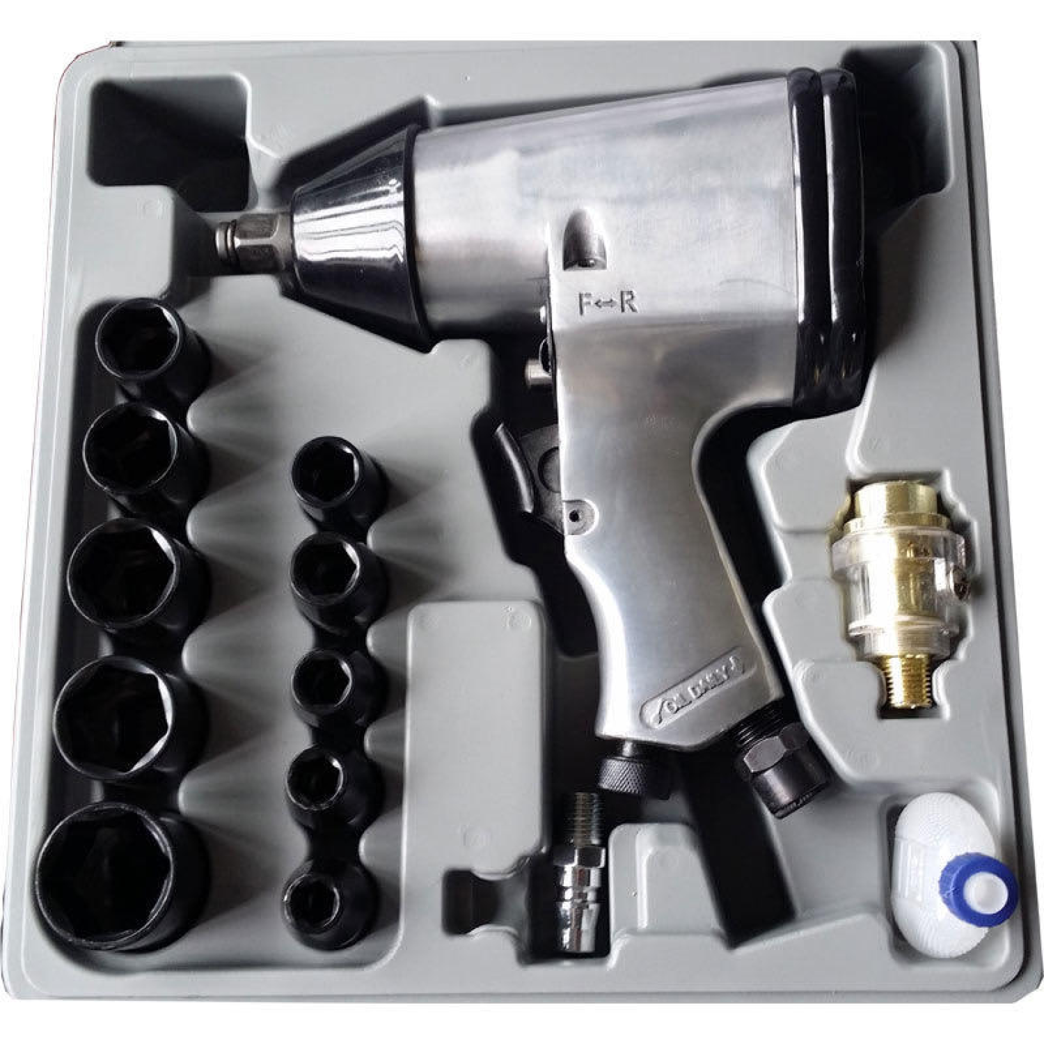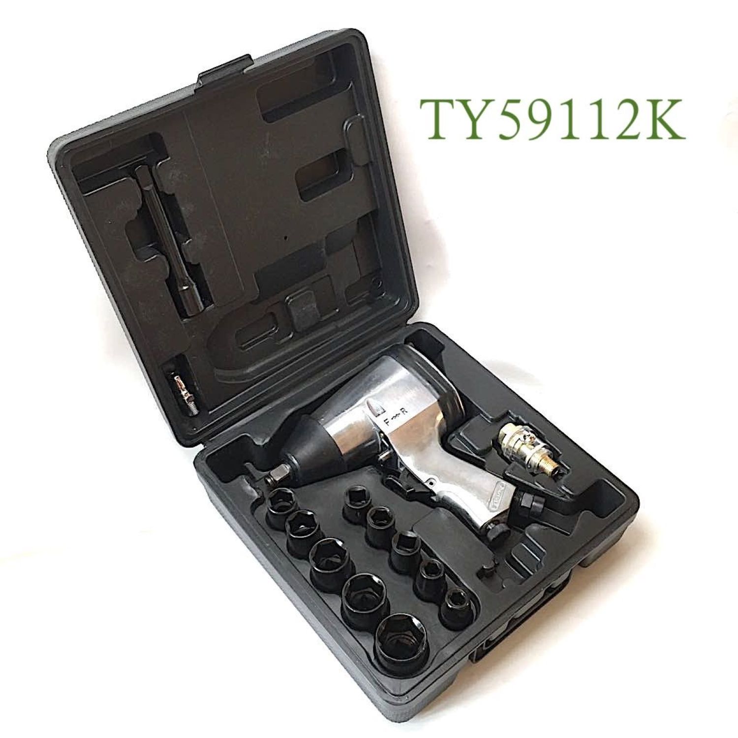 1*TY59112 PNEUMATIC GUN 1*M9 Socket, 1*M10 Socket, 1*M11 Socket, 1*M13 Socket, 1*M14 Socket, 1*M17 Socket, 1*M19 Socket, 1*M22 Socket, 1*M24 Socket, 1*M27 Socket, 1*Allen Key, 1*Extended Bar, 1*Male Nipple, 1*Lubricator, 1*Air cleaner, 1*Blow-molded Carry Case 1*Owner's Manual