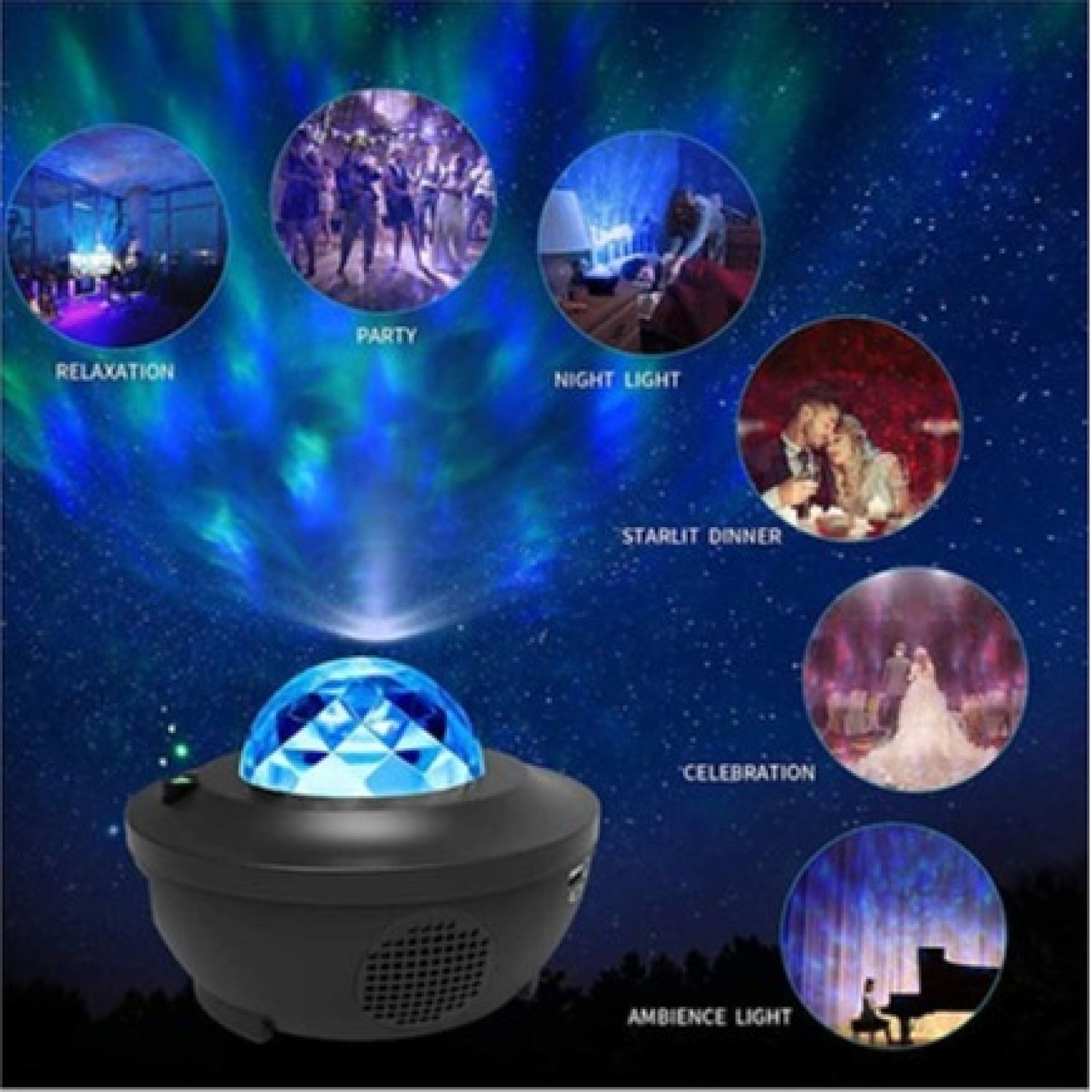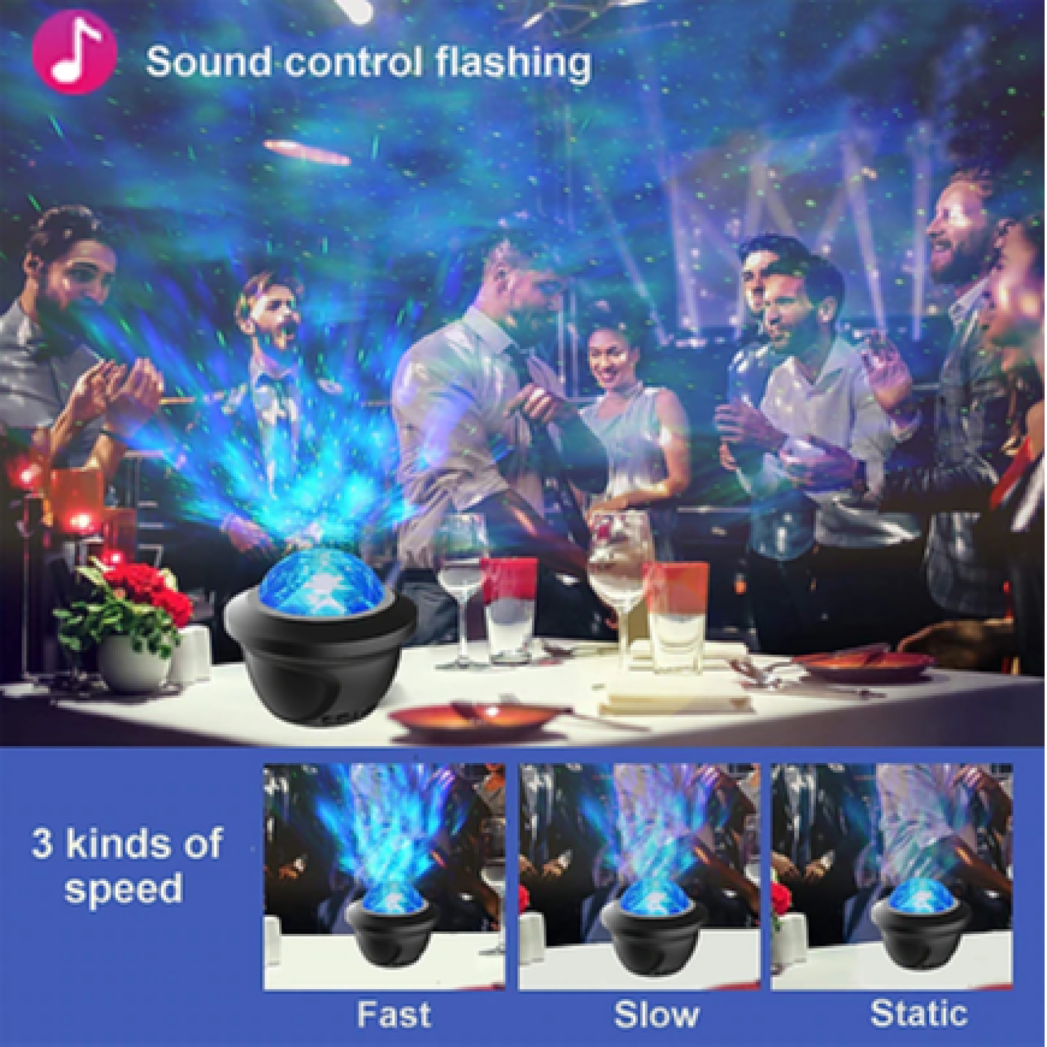 Bring the starry, night sky right into your own home with this Starry Sky LED Party Bluetooth Speaker and Projector. With this night light projector, you can enjoy lying under the stars watching the vividly colored, celestial show as they twinkle and swirl around the room. So close you'll want to reach out and touch them!