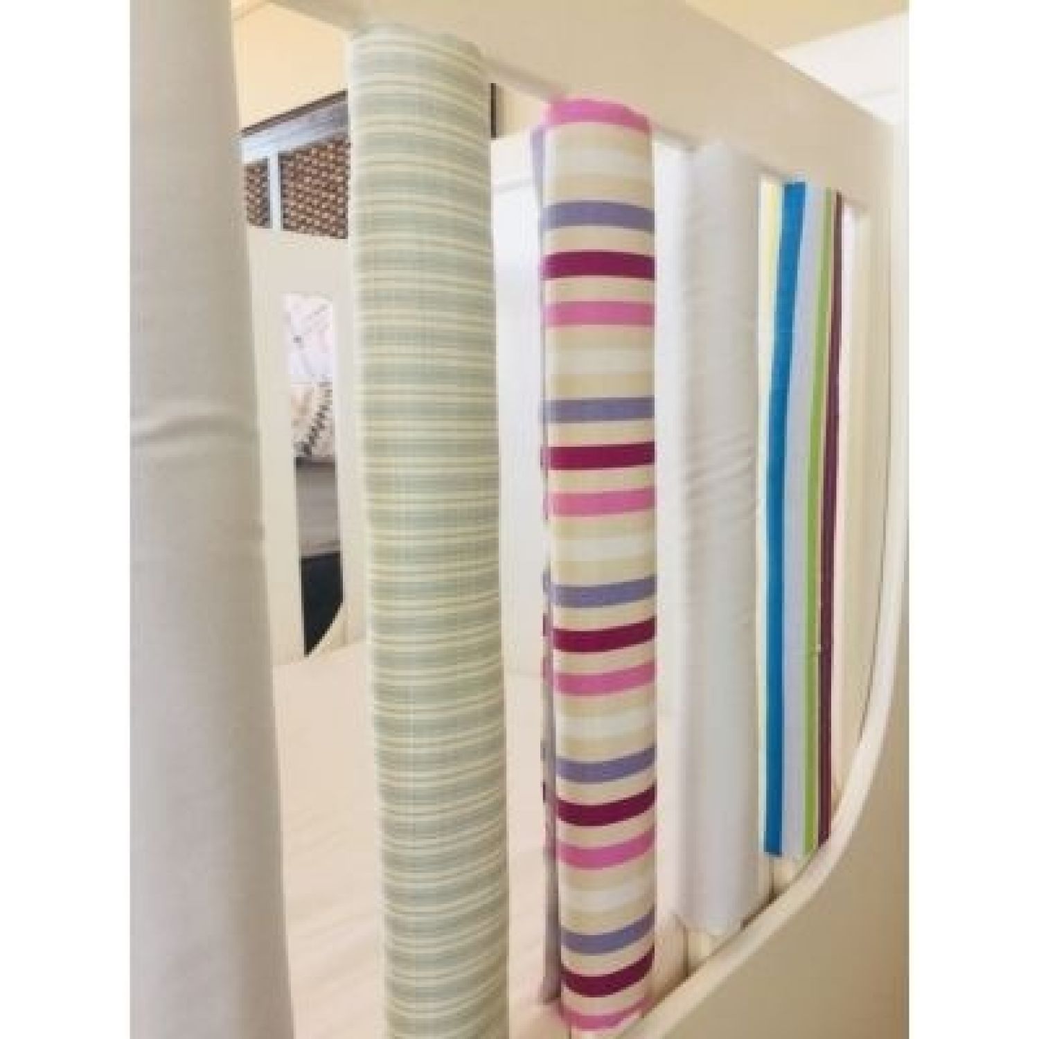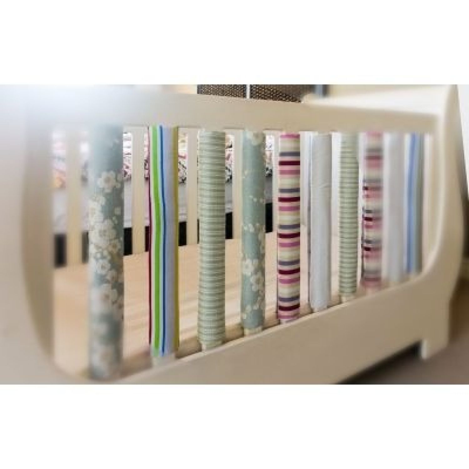 The Protective crib liner is a vertical padding that fits on each rail of a crib.