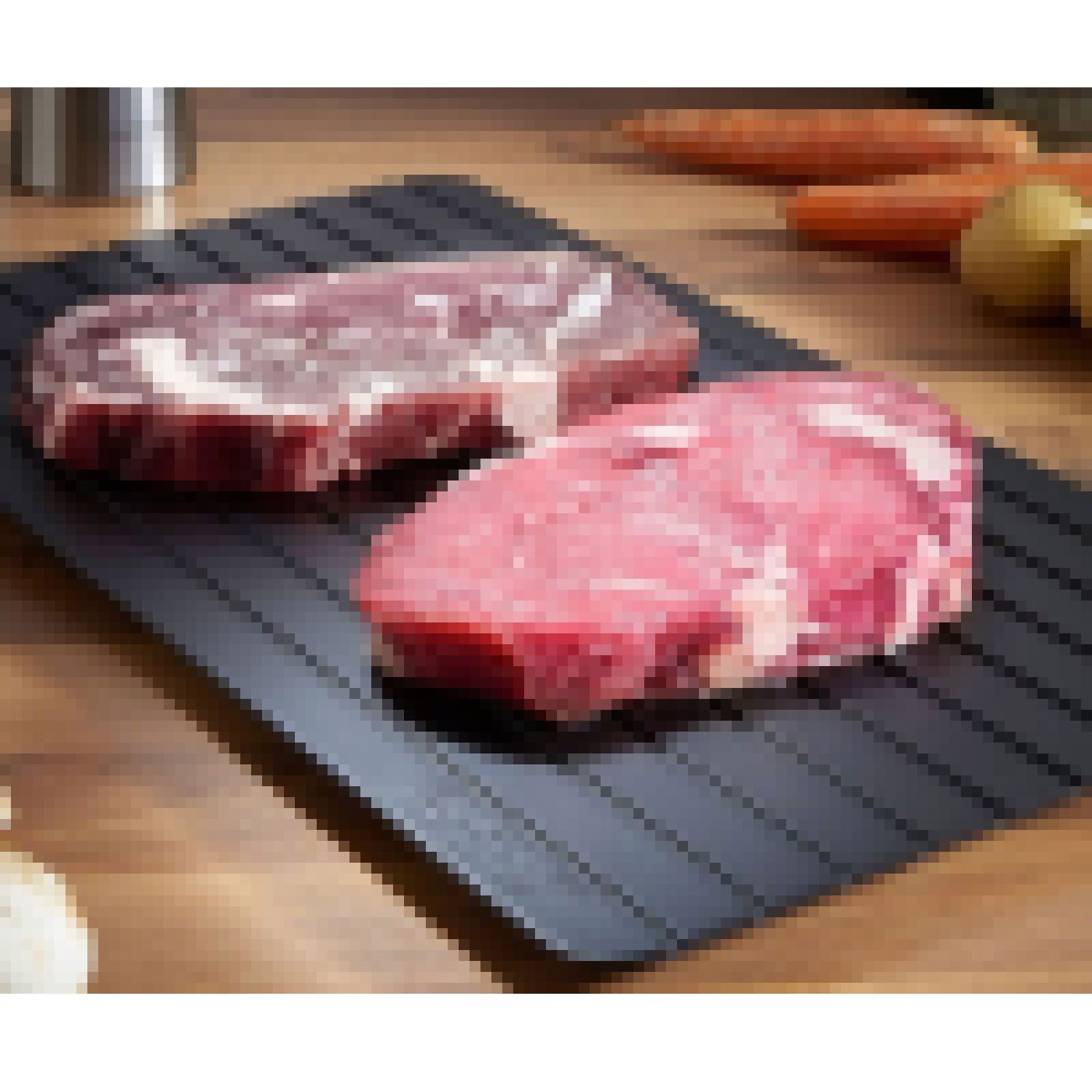 The Rapid Defrosting Tray allows you to defrost frozen food up to 10X faster than at room temperature! This Wonder tray will help you defrost Fish, Meat, poultry or anything else that's frozen. Thawing times will vary depending on the thickness of the meat but on average it will take between 10 and 40 minutes