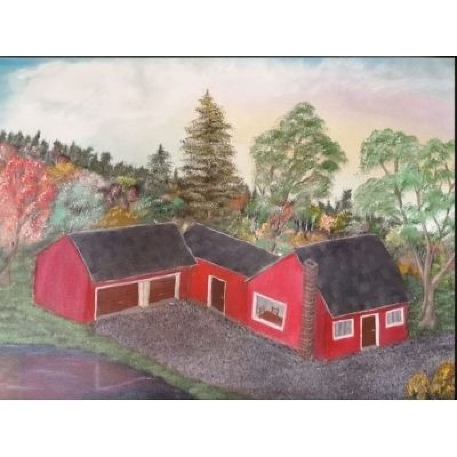 This original oil of a house in the mountain creates a feeling of yearning to a time where life was not so rushed. It reminds us of a time when we ate together in grandma's kitchen.