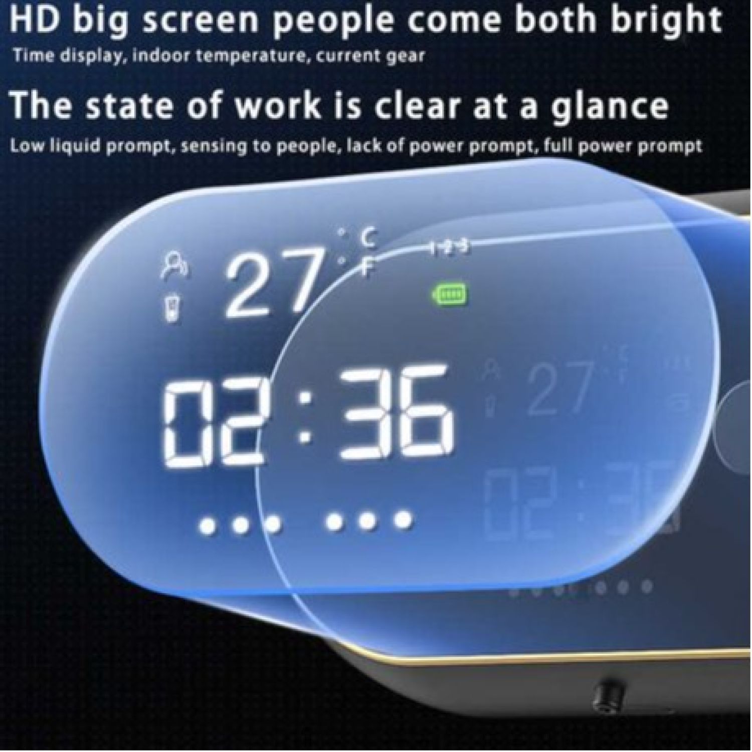 - Real-Time Monitoring: Displays time, indoor temperature, gear levels, and alerts for low liquid levels, power shortages, and full battery status.