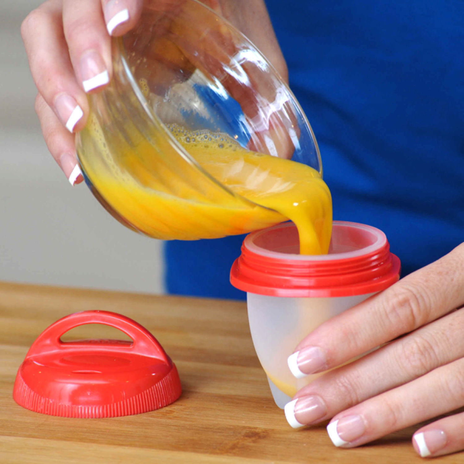 Step 1. Crack egg into the cup and twist on lid(add non-stick spray or oil in the cup before use);