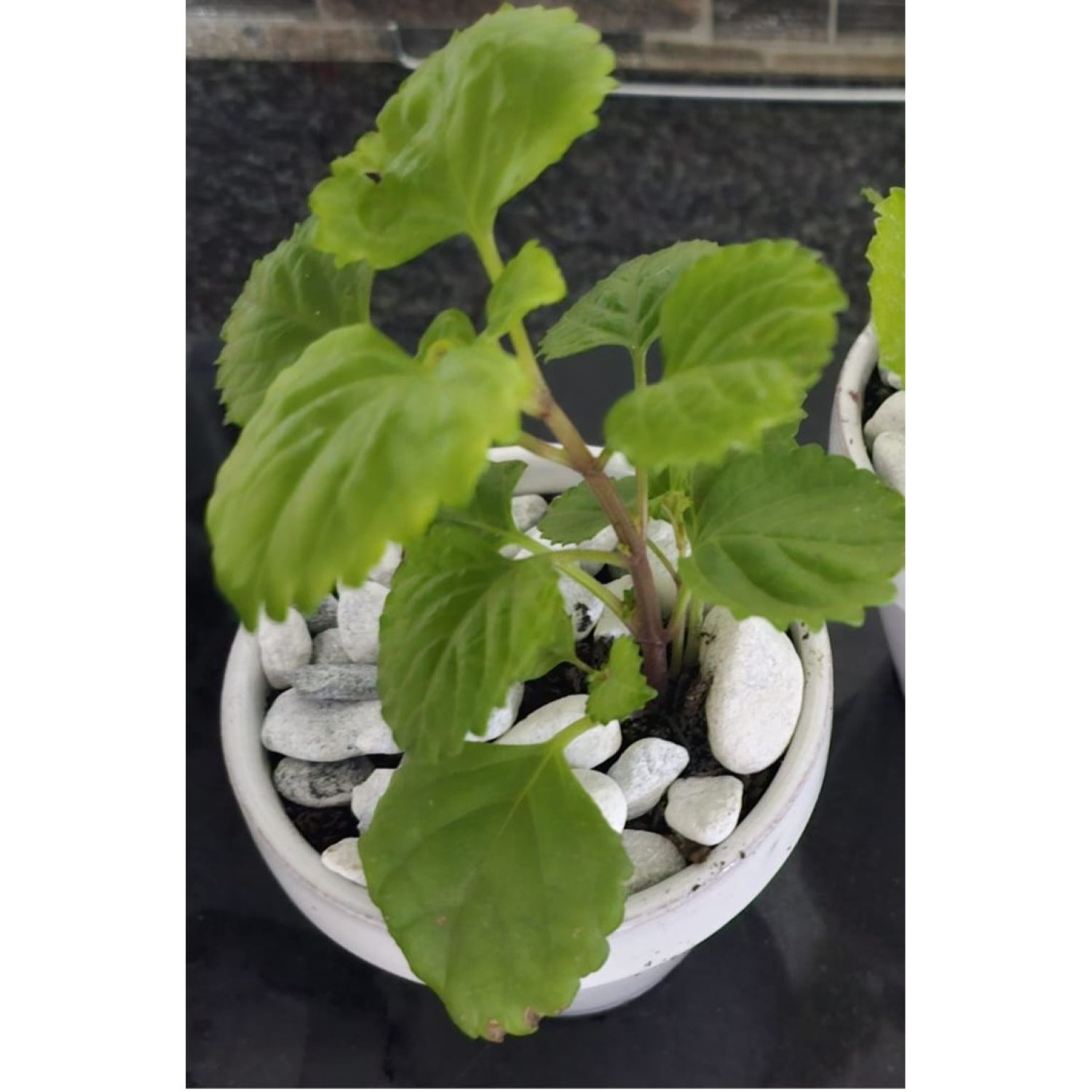 Money plant in white glazed pot. Ideal plant for indoors, Table center piece and book shelves. Plectranthus species.Benifits of this plant: Improves air quality, reduces stress and promotes a sense of well being . Believed to bring good fortune.