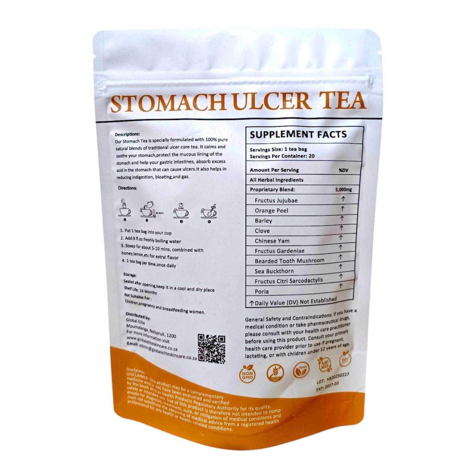 Our Stomach Tea is specially formulated with 100% pure natural blends of traditional ulcer care tea. It calms and soothe your stomach, protect the mucous lining of the stomach and help your gastric intestines, absorb excess acid in the stomach that can cause ulcers. It also helps in reducing indigestion, bloating, and gas.