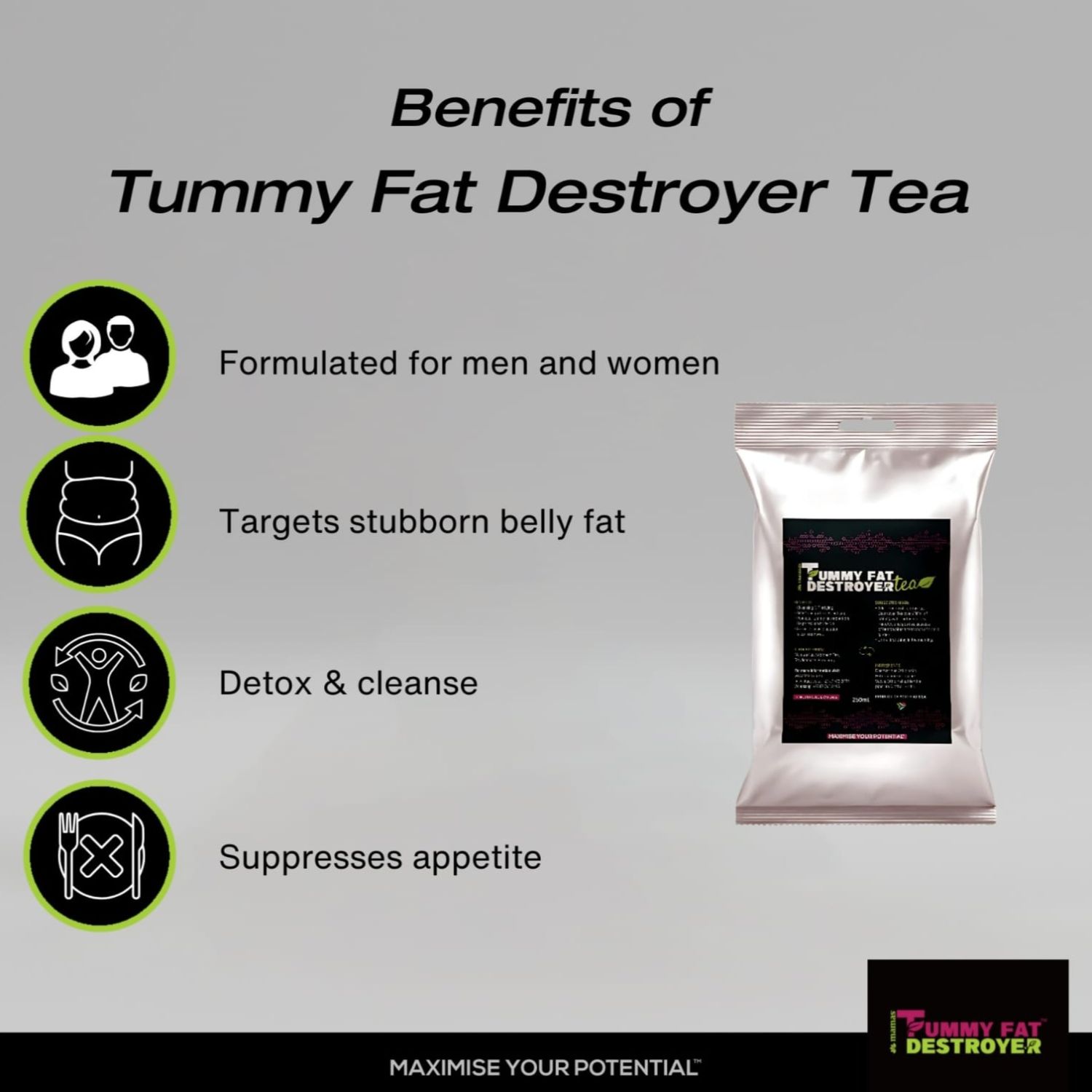 Tummy Fat Destroyer Tea with Black tea is rich in antioxidants like theaflavins and thearubigins, and it may help with: Heart health Improved focus and energy (due to caffeine content) Digestive support Weight management Reducing inflammation