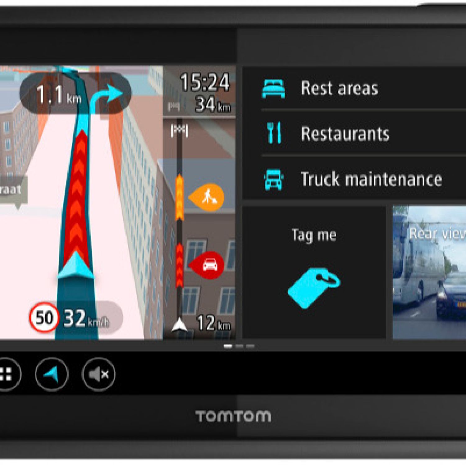 Tomtom 1FI7.121.00 Bridge GPS - Africa Connected, 7 inch Capacitive screen, 2W speaker, 1GB RAM and 16GB flash storage, Micro SD card slot, Car dock, 3G-embedded modem, Replaceable battery, Lifetime Maps, Lifetime TomTom Traffic, TomTom navigation, Near Field Communication, Camera, Flashlight